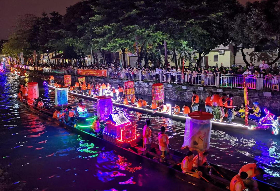 ③ 4月30日晚,欢乐文化节系列活动启动暨“我和夜龙一起乘风破浪”夜龙巡游活动将在顺峰山公园举行,本次夜龙巡游将由8艘40米长的非遗文化展示船首尾相连,分别展示不同的非遗文化,形成一条“顺德非遗巨型龙舟”。届时,市民将见到锣鼓、罗伞、彩灯等文化元素装饰到游龙上,配合五颜六色的LED灯饰,尽展游龙美态,令人感受到浓浓的传统文化味道。