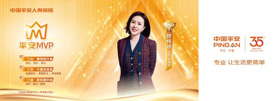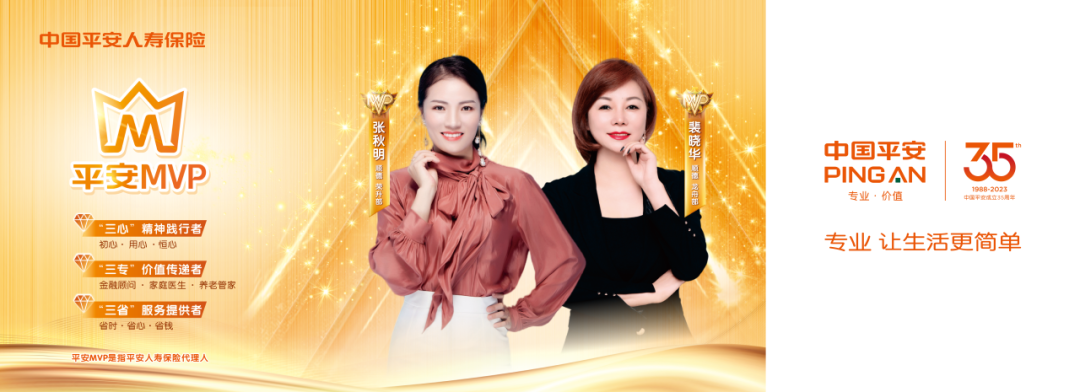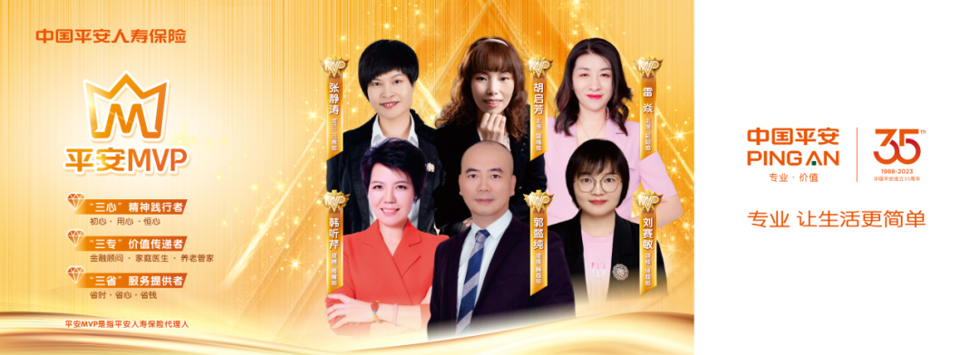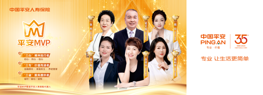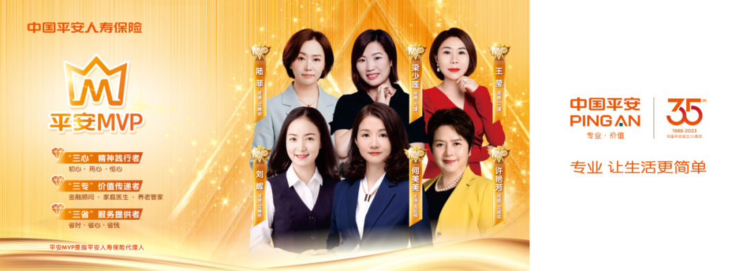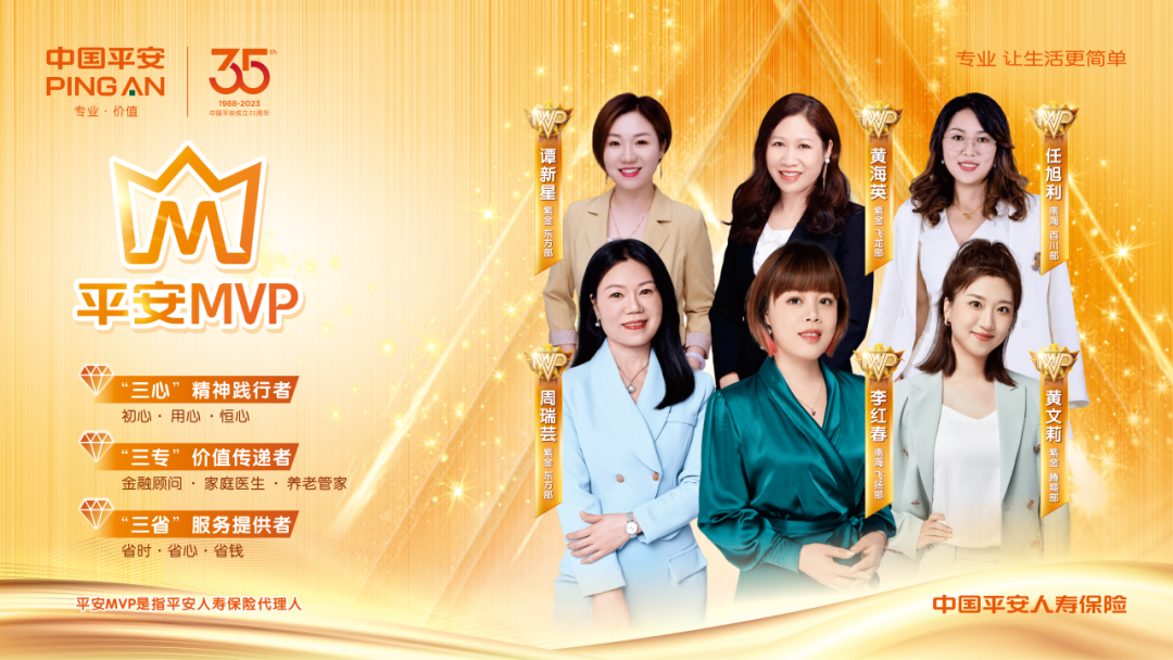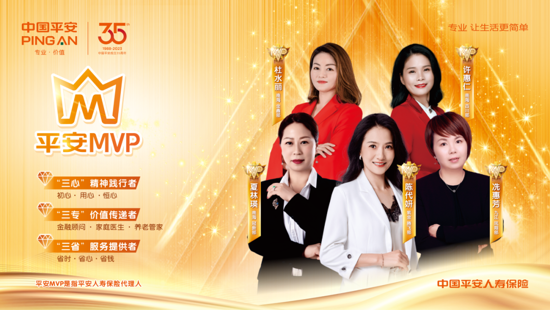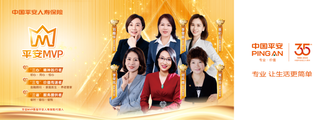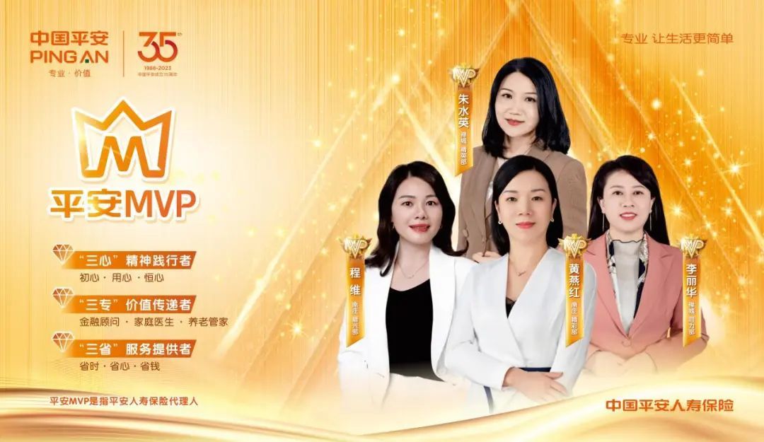 平安MVP——Most Valuable Professional,即最具价值保险代理人。多年来,他们不忘初心,坚守信仰,以用心和恒心将爱与责任身体力行,致力成为“最专业的金融顾问、最专业的家庭医生、最专业的养老管家”的价值传递者,让客户“省心、省时、又省钱”。他们精进修行,志存高远,向上向善,积极服务大众,服务社会,用“专业,让每个家庭拥有平安”。