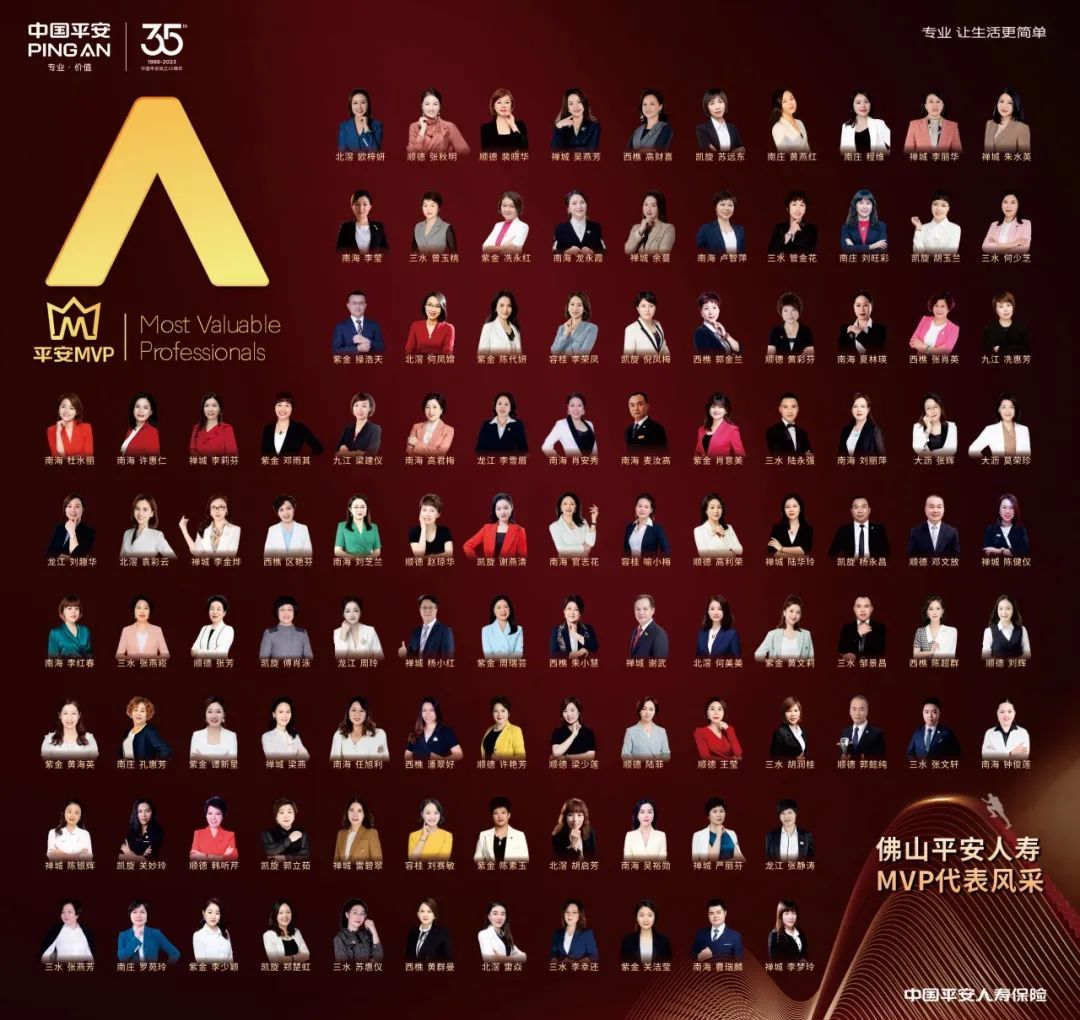 佛山平安人寿MVP代理人作为先进代表,他们十年如一日,深耕行业,践行着保险人的爱与责任,以成为最专业、最顶尖的保险推销员为目标,力争成为行业标杆!