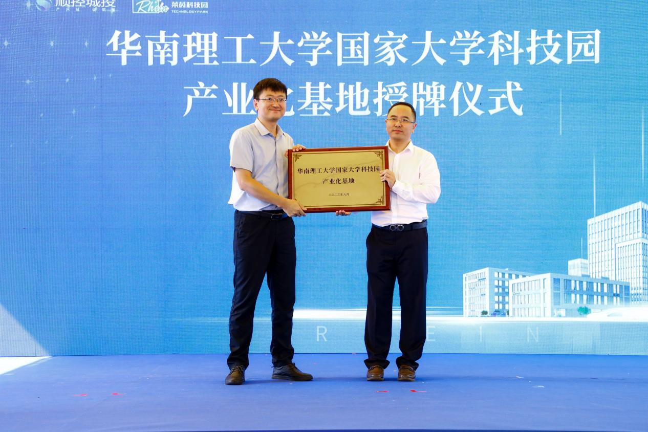 优质企业的进驻,彰显莱茵科技园高质量发展的底色,而985高校国家级平台、集成电路(半导体)示范平台落户,为园区创新要素催生产业发展新动能,打造国资驱动、以投带招、产融结合的成果转化模式。现场,莱茵科技园被授予华南理工大学国家大学科技园产业化基地称号,同时,顺德区集成电路(半导体)产业科技示范园区也在当天正式揭牌。