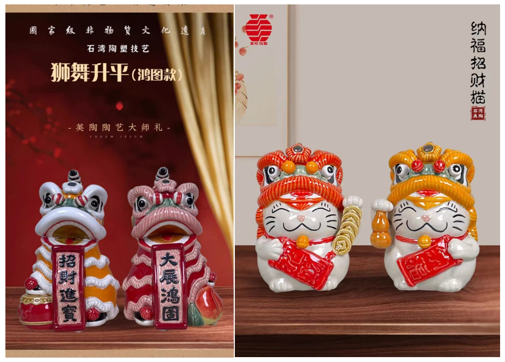 本次凤凰2024佛山特产年货节,新美陶公司带来了“好事发生”“舞狮升平”“醒狮猫”“一帆风顺”“招财纳福”等多款蕴含岭南文化特色、寓意满满的陶艺产品,欢迎大家选购,一起迎新春,接祝福。
