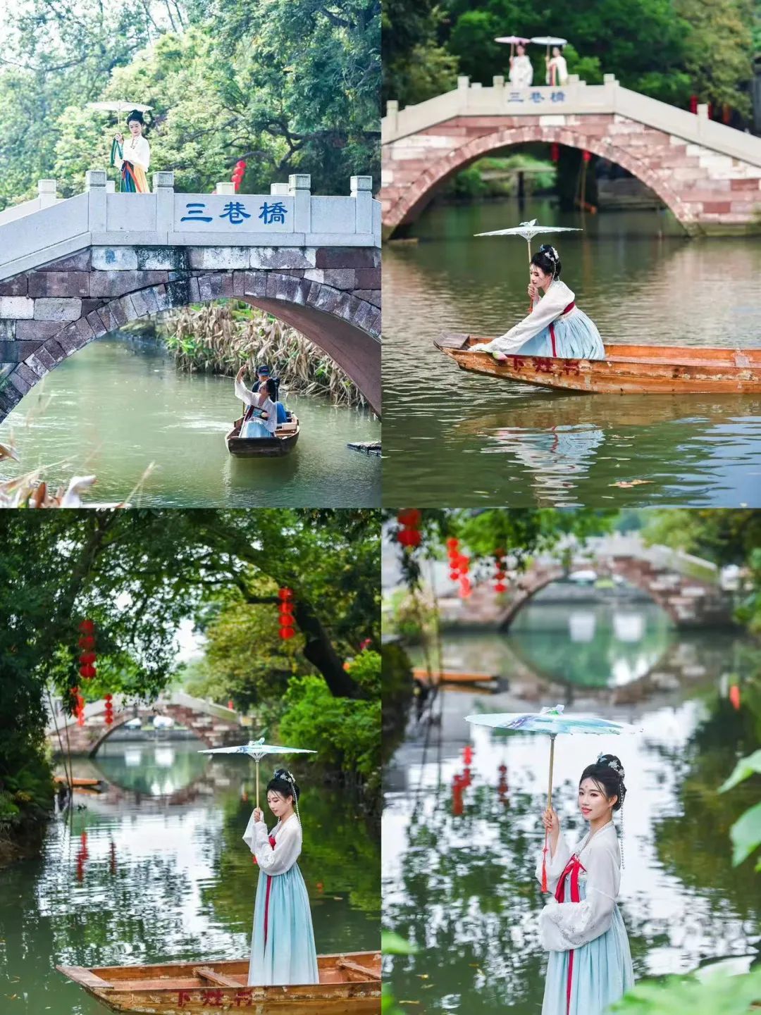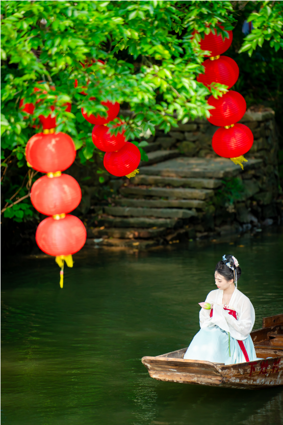 古镇的游玩不仅仅是游,还有各种各样的体验,让你穿越进千年时空。如果你穿着汉服前来,还可以沉浸式感受汉朝的江南水乡景色,飘飘然如仙子般,“环肥燕瘦”各有风韵。