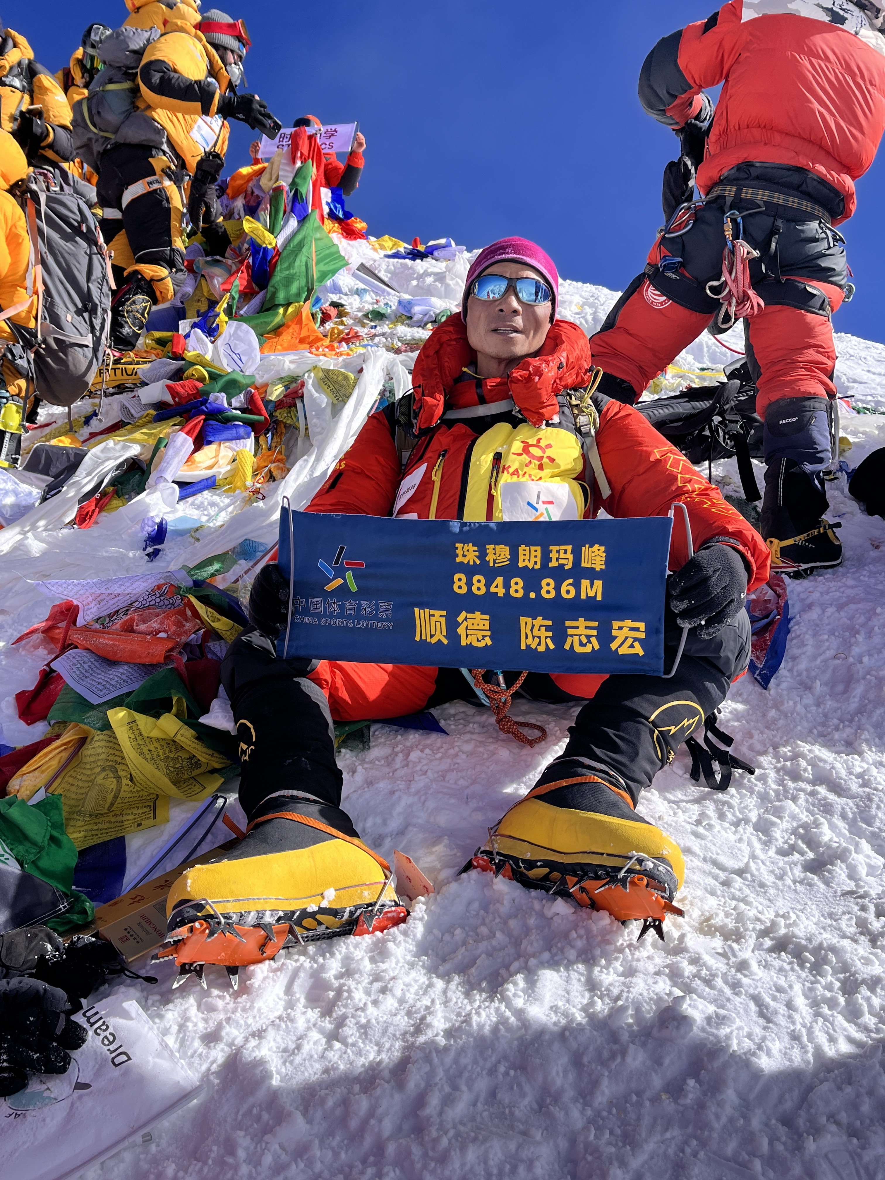 据了解,登顶日期由于天气原因从5月15日推迟到21日,在营地进行休整后,陈志宏正式向世界之巅发起冲击。经过漫长而疲劳的攀登,在5月21日10时15分,陈志宏成功登顶珠峰。他站在海拔8848.86米的世界之巅,用地道的顺德话喊出“嚟顺德,一定得”,向世界展示了顺德人坚韧不拔的精神风貌。