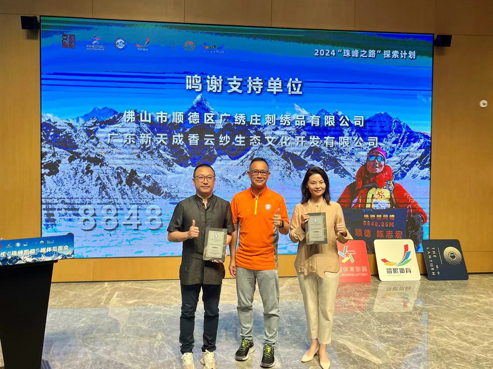 同时,作为土生土长的顺德勒流龙眼人,陈志宏在登顶珠峰的过程中随身携带了几面手拉旗,将顺德香云纱、广绣、双皮奶等传统文化元素一同带上海拔8848.86米的世界之巅,用行动传递“世界美食之都”顺德的文化符号,向世界传播顺德符号。