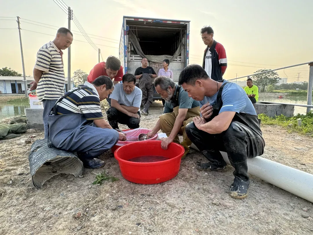 5月15日,清晨天色微明,位于三水区乐平镇范湖村的合创捷公司泰国笋壳鱼良种示范基地内已是一片忙碌场景。12万尾活蹦乱跳的泰国笋壳鱼苗经过系列标准流程,顺利装车,即将运到碧湖村养殖户的手中,第一批鱼苗顺利出货,宣告由佛山市三水区合创捷农业服务有限公司与珠海市斗门区添源过目有限公司联合打造的、三水区首个泰国笋壳鱼鱼苗示范基地实现开门红!