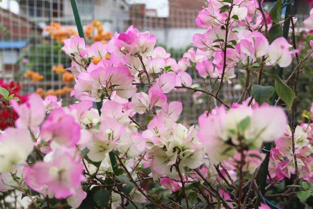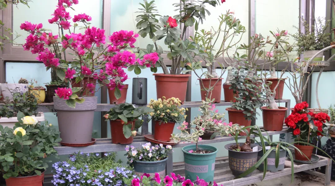 走进庭院,只见繁花似锦,三角梅、海棠、长寿花……各式花卉应有尽有,花朵的搭配协调合理、色彩绚丽,景致别致错落,让庭院景观生动美丽。郑庆进的庭院主要由女儿郑洁华进行打理,每逢空闲时间,郑洁华就会对花草进行规划修剪,每一棵盆景上都贴有标签,上面写着花草的品种和习性,以便对盆栽进行养护。