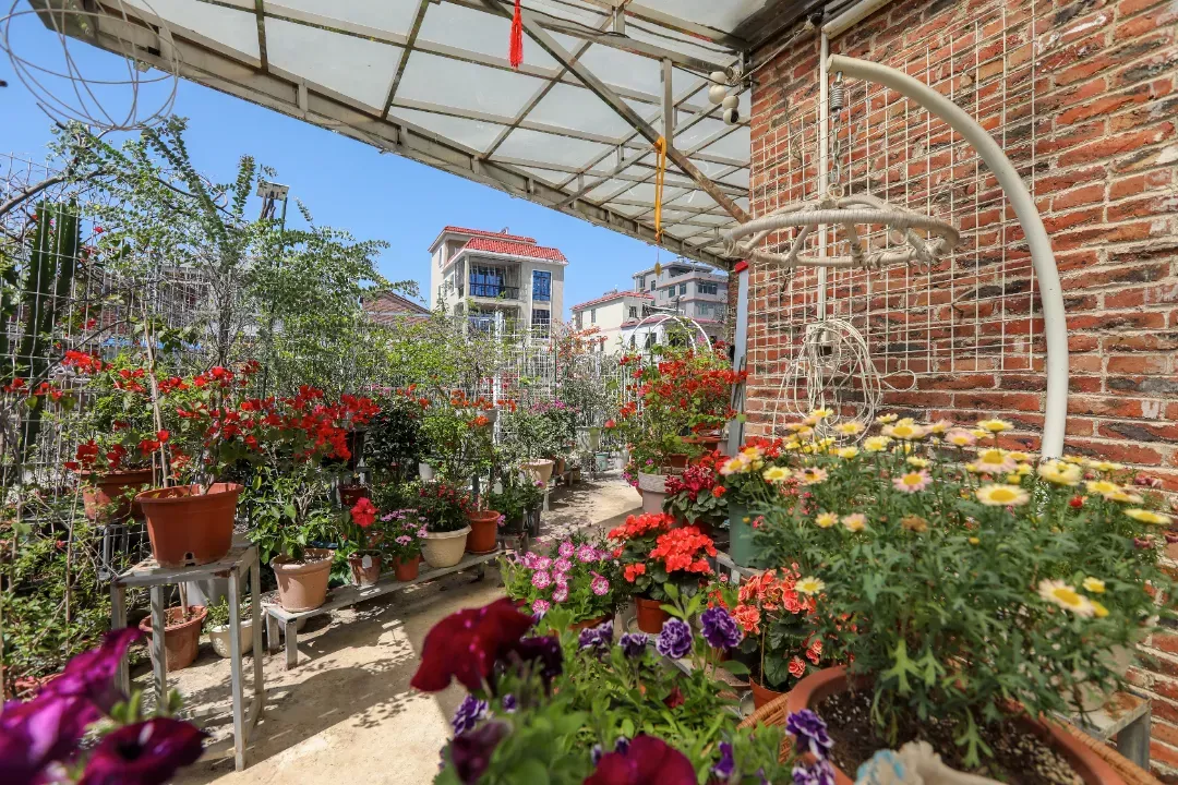 花开满园引人醉,万紫千红遍地香。一方庭院,花繁草香,生机盎然,这里就是郑庆进的庭院。郑庆进的家坐落于大旗头古村中,村内的青阶、灰墙、镬耳无不铭刻着百年沧桑之美,古村曾登上《国家地理》杂志,被誉为“广东第一村”。