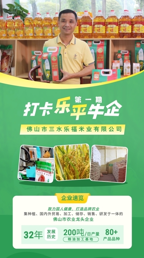 乐福富硒丝苗米、乐福鼠牙软粘米、乐福贡品米、乐福一级纯正花生油……相信很多街坊对这些粮油名称都不陌生,其实这些产品的得名,都源自三水乐平一家米业企业。「打卡乐平牛企」首站,带你走进佛山市三水乐福米业有限公司,探秘优质稻米如何从田头到餐桌,最终变成飘香的米饭。
