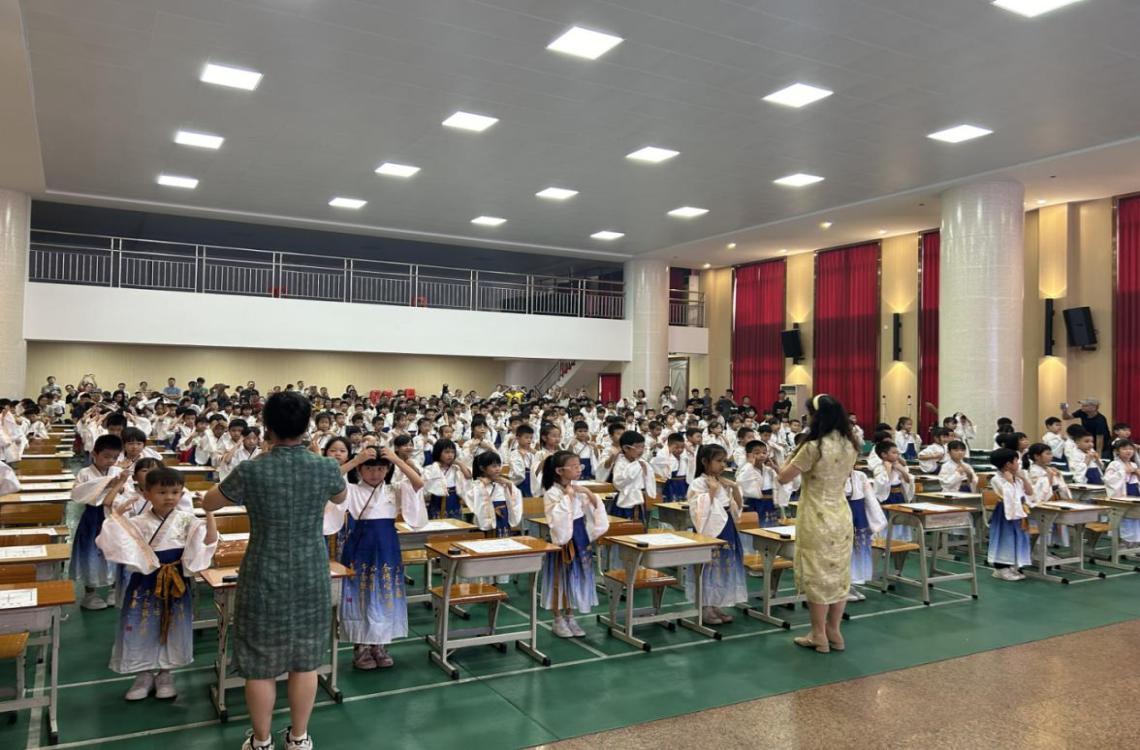 容桂红旗小学校长李丽强调,中国作为礼仪之邦,自古尊师重教、明德尚礼,开笔礼是人生第一礼,标志着同学们开始踏上学习本领、学做真人的新征程。校长的话语充满殷切期望和深深祝福,为同学们的成长之路指明了方向。