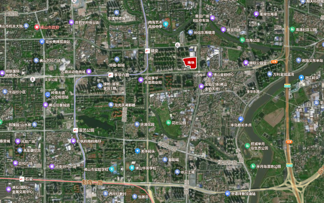 地块位于禅桂交界石𬒔板块,季华路北侧、桂澜路西侧,紧邻在建佛山地铁4号线石𬒔站。地块周边有星星凯旋国际、怡翠玫瑰园等大型居住社区,居住氛围浓厚。