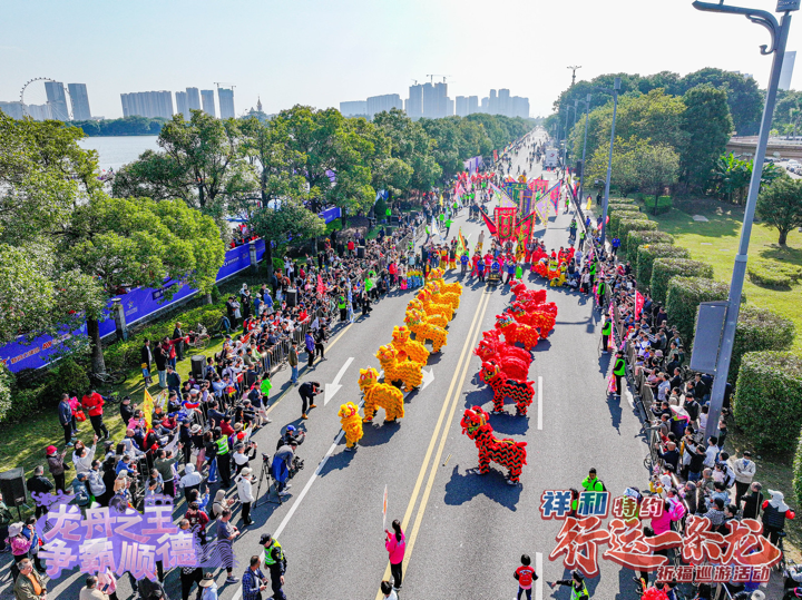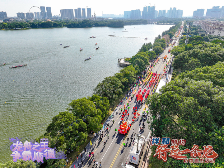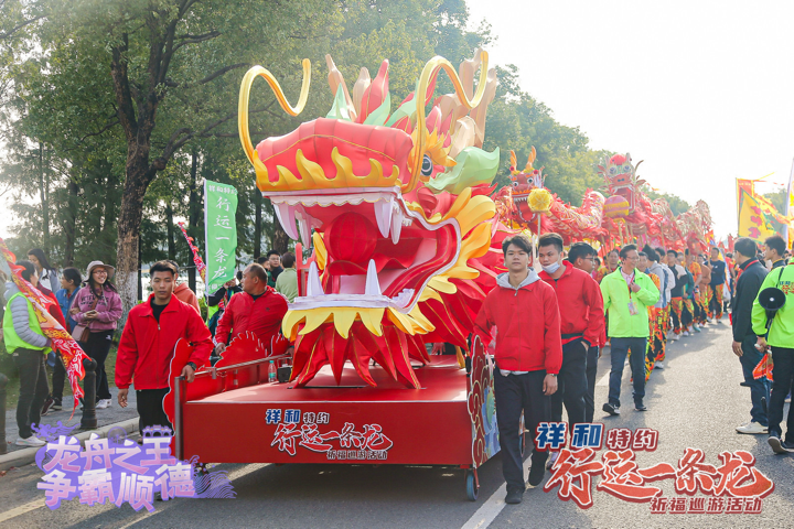 在龙舟大奖赛举办期间,祥和特约2024年“行运一条龙”祈福巡游活动也在同步进行。巡游路线将会从苏岗龙母庙启动出发,以顺德10个镇街的龙舟文化元素组成一条“文化巨龙”,将途经华桂园、美的体育公园、观音堂等地,最终抵达顺峰山公园牌坊,全程共计约4.5公里。为市民朋友带来一场沉浸式的文化体验。