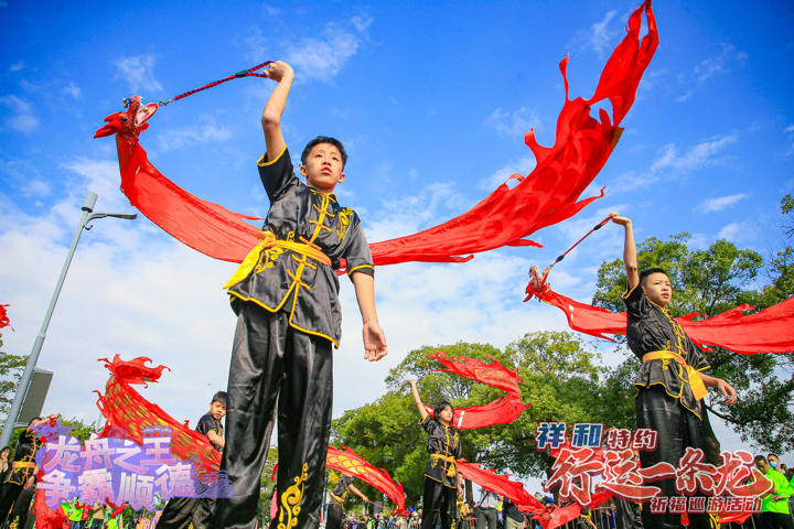 巡游以“拜龙母”“龙眼点睛”等民俗仪式为核心,凝练“行龙运,接龙福”的寓意,让市民游客近距离感受民俗活动的独特魅力。其中,巡游队伍由飘色队、至in大头佛、与龙共舞、亲子传承、黄连龙虱游艺等多个方阵组成,沿途将会在途中的展演点和顺峰山公园牌坊进行互动展演。