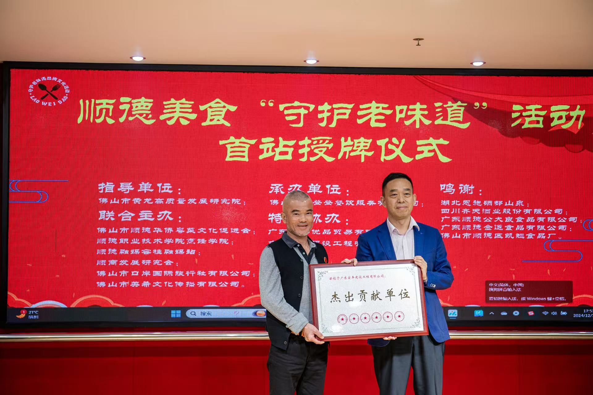 12月7日,顺德美食“守护老味道”活动首站授牌仪式在顺德容莲宾馆满登登酒楼举办。其中,顺德容莲宾馆满登登餐饮服务有限公司、广东集鲜优品贸易有限公司、广东顺德公大良食品有限公司、广东宏丰建设工程有限公司等单位,以其深厚的底蕴、地道的产品、优质的服务以及深厚社会责任和付出支持,获得了本次荣誉。
