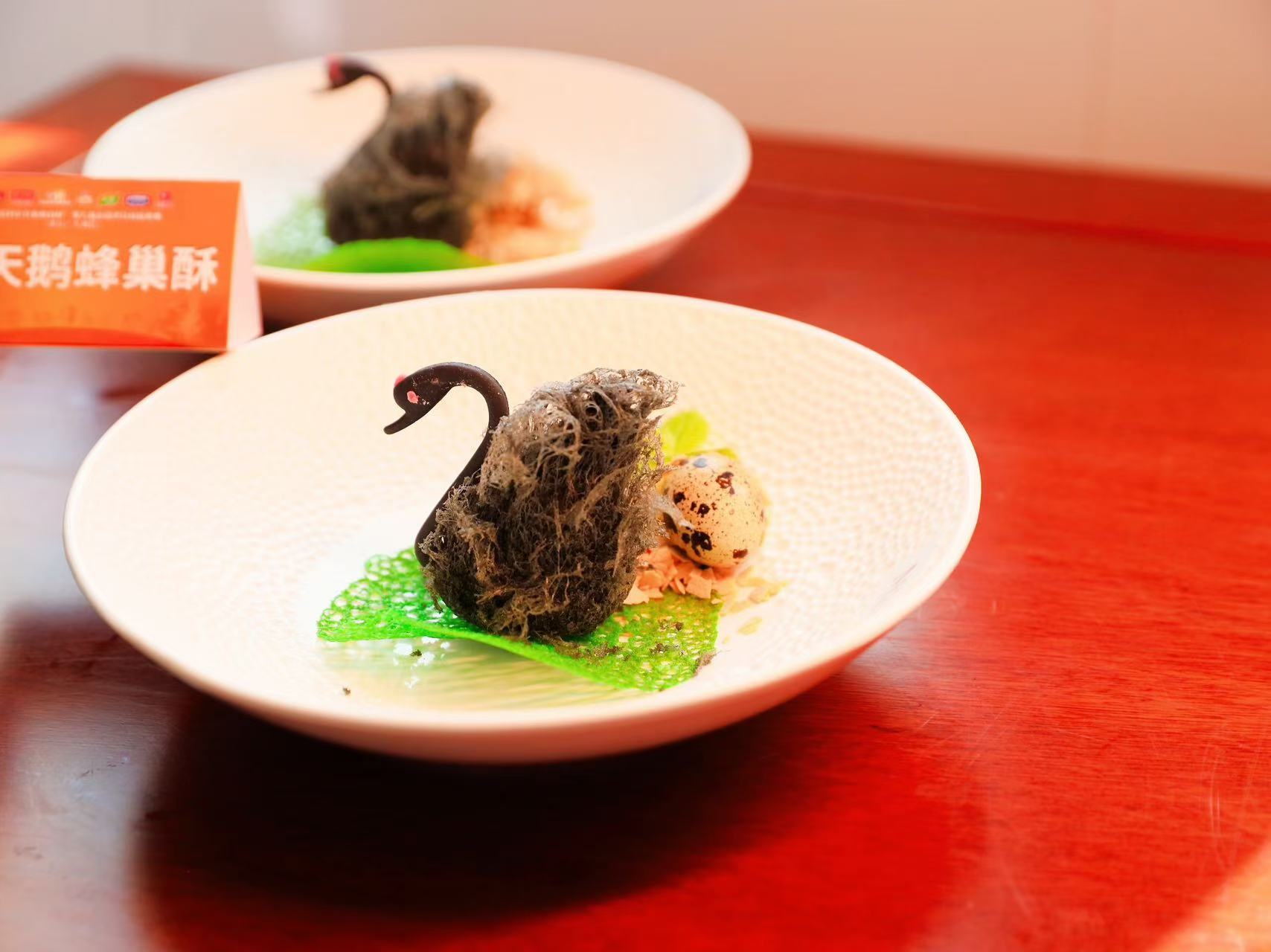 其中,麦振华制作的黑天鹅蜂巢酥,栩栩如生的黑天鹅造型相当吸睛,外酥内软的口感考验的是厨师对油温和油酥的极致把控;象形芋头包同样也考验厨师巧斧天工的技艺。“为将传统点心的韵味与现代的美学设计达到完美融合,我们甚至连摆盘的碗都是郑主厨跑遍了广州的厨具市场亲自挑选。”梁德坤介绍,利华玉树鸡这道菜能够体现一个厨师的功底,是综合技术性要求比较高的菜品;而龙虾炒牛奶采用了顺德水牛奶为原材料,能够体现顺德特色风味。最终,麦振华制作的黑天鹅蜂巢酥、象形芋头包荣获中式面点赛特金奖,梁德坤制作的利华玉树鸡、龙虾炒牛奶荣获中式烹调赛银奖,利华玉树鸡同时获得健康菜肴奖。