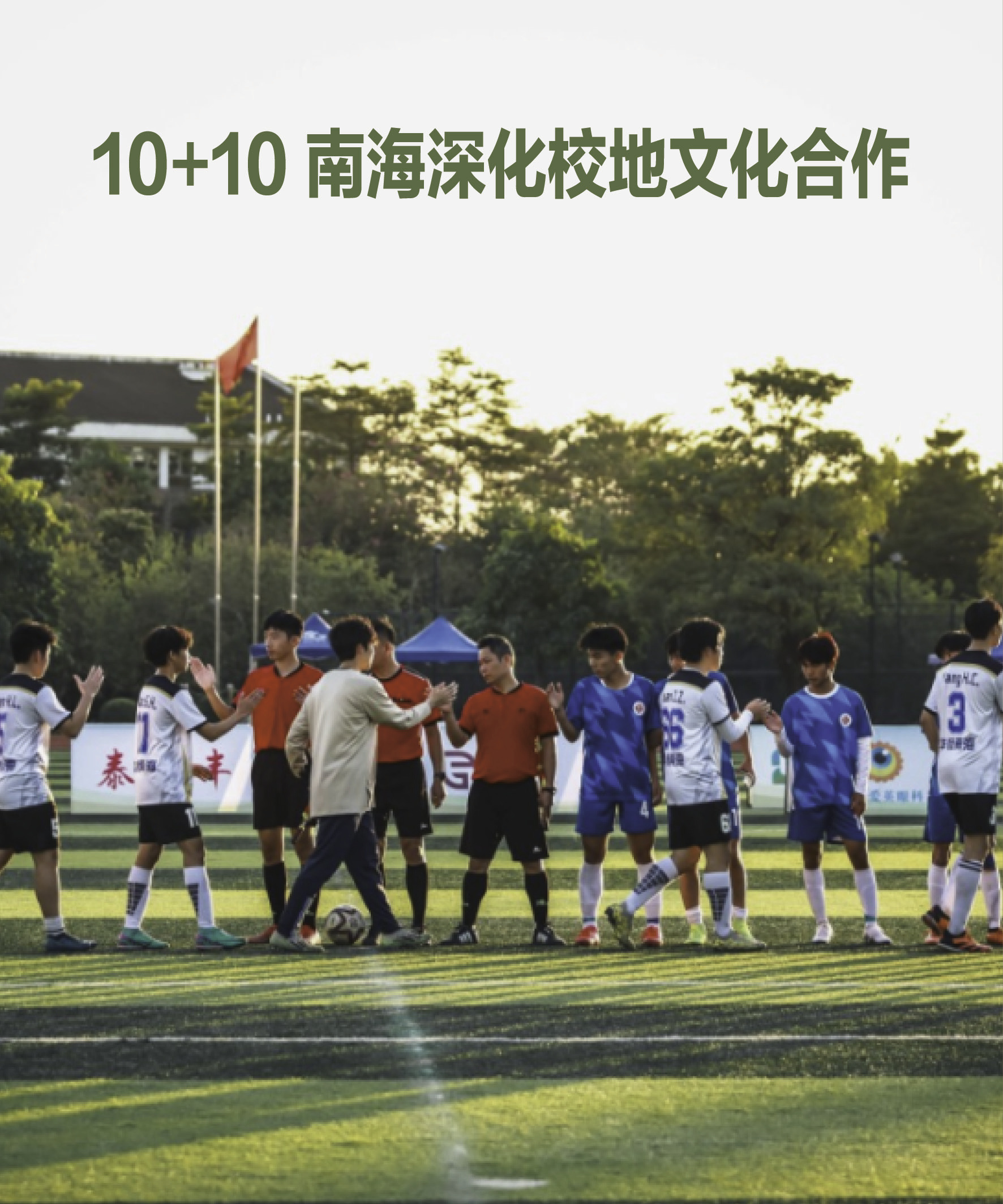 2024年11月9日,2024年南海区高校足球校际赛暨“一汽大众杯”狮山镇百校足球联赛开幕,超100支球队、近2000名球员打造大湾区规模最大的“百校足球联赛”。开幕式上,南海区与10所驻地高校签署深化校地文化合作“10+10”框架协议,随后陆续开展体育赛事、文化艺术、传播宣推3个方面的10项校地文化合作项目。