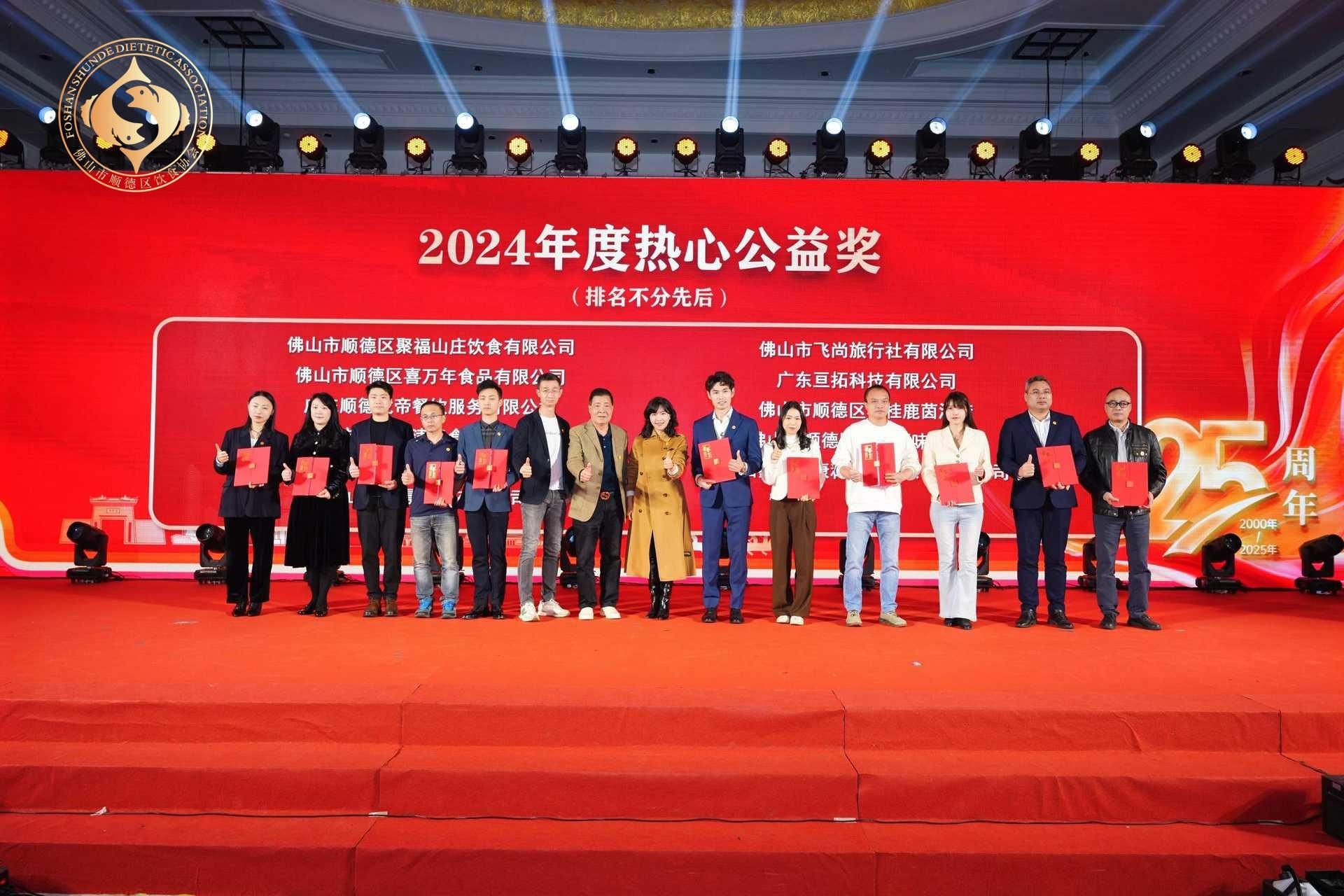 2月24日,顺德区饮食协会成立25周年志庆暨2025春茗晚宴在顺德容桂鹿茵酒店举行。现场,嘉宾们共聚一堂,为顺德区饮食协会举杯,庆祝其25岁的生日。