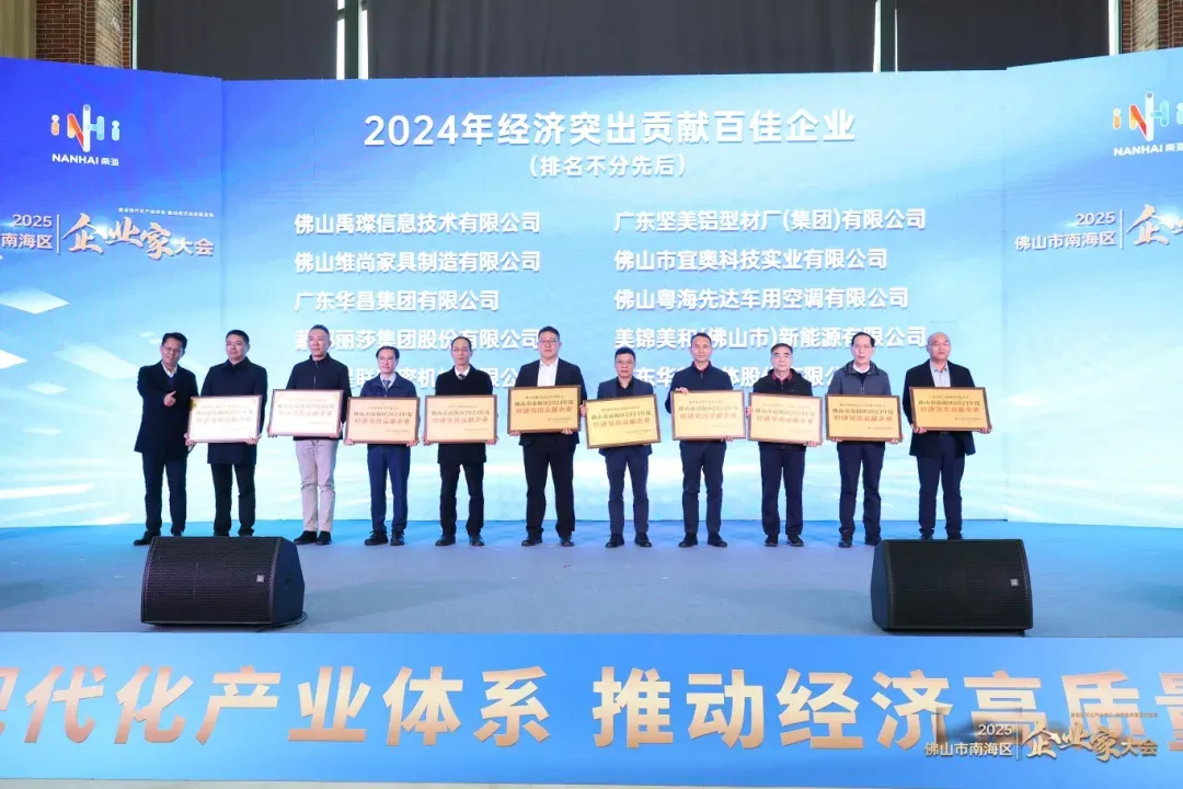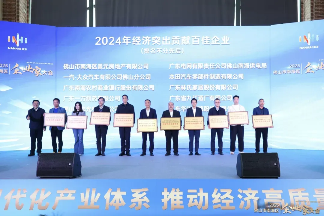 2024年,南海区承压而上、克难而进,保持经济平稳健康发展,全区实现地区生产总值超过4000亿元。为大力弘扬新时代企业家精神,动员和激励全区广大企业及企业家在2025年继续鼓足干劲、拼搏进取,为南海打造现代化产业体系,建设更具人文特质的现代化活力新南海作出更大贡献,大会为2024年经济突出贡献百佳企业中的20个代表企业进行授牌。
