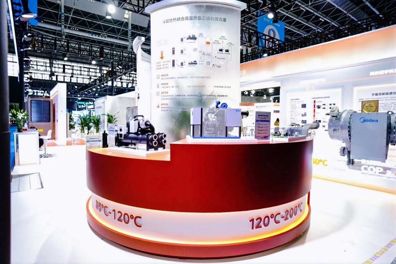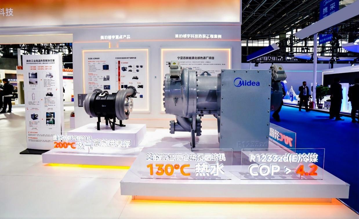 针对工业用热领域,美的楼宇科技更是推出了涵盖不同温度区间的热泵产品矩阵,为纺织、食品加工、制造、化工等工业领域的绿色转型提供了强有力的支持。美的超高温单机双级变频离心工业热泵和150至200℃超高温双级磁悬浮水蒸气压缩机两款重磅产品,凭借其高效节能、稳定可靠、应用灵活等特点,在展会现场荣获了创新产品金奖,进一步彰显了美的楼宇科技在工业热泵领域的深厚实力。