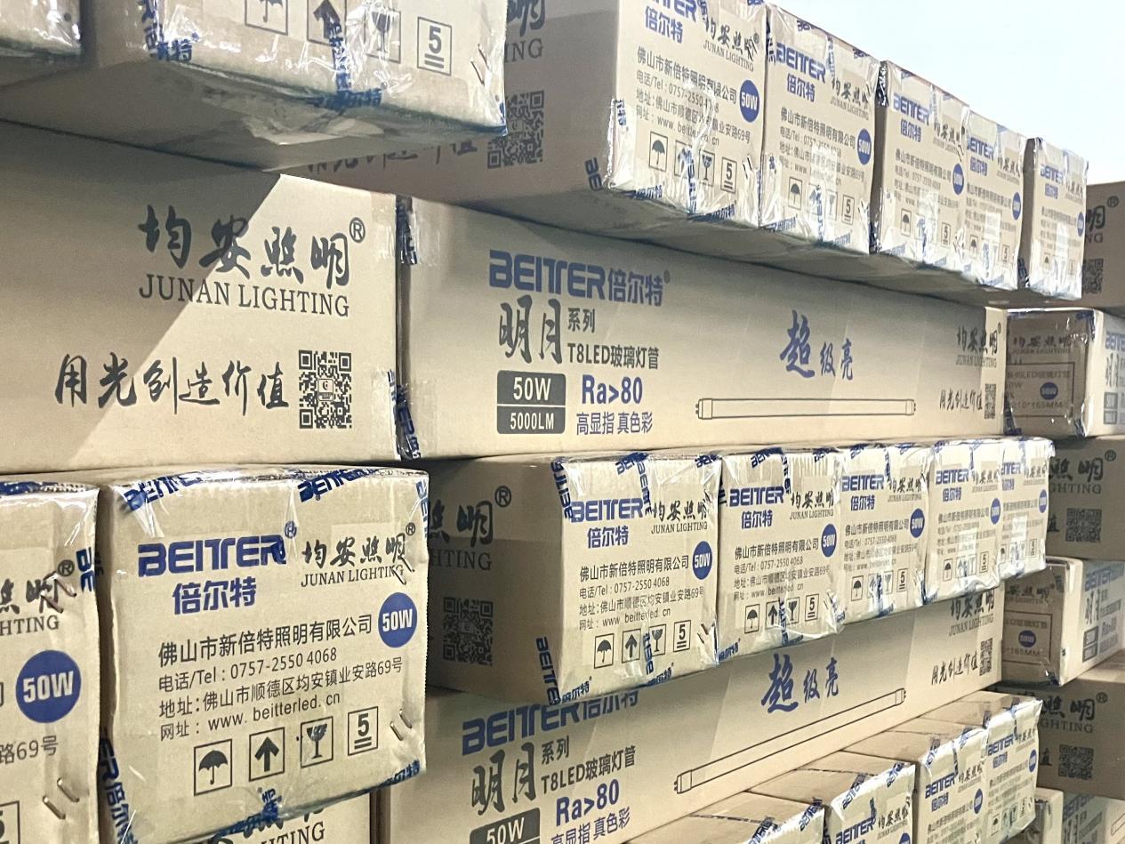 与基地照明相距约五公里的均安畅兴工业园是顺德最大的灯饰生产基地,佛山市新倍特照明有限公司就在该工业园内,该公司以T8灯管、平板灯、吸顶灯等为主营产品,月产量可达300万件以上,因产品质量过硬,信誉良好,受到海内外客户的信赖。公司总经理张慧泰介绍称,倍尔特自2017年开始开始做T8灯管,在灯管的的细分领域里面是排在前面的。