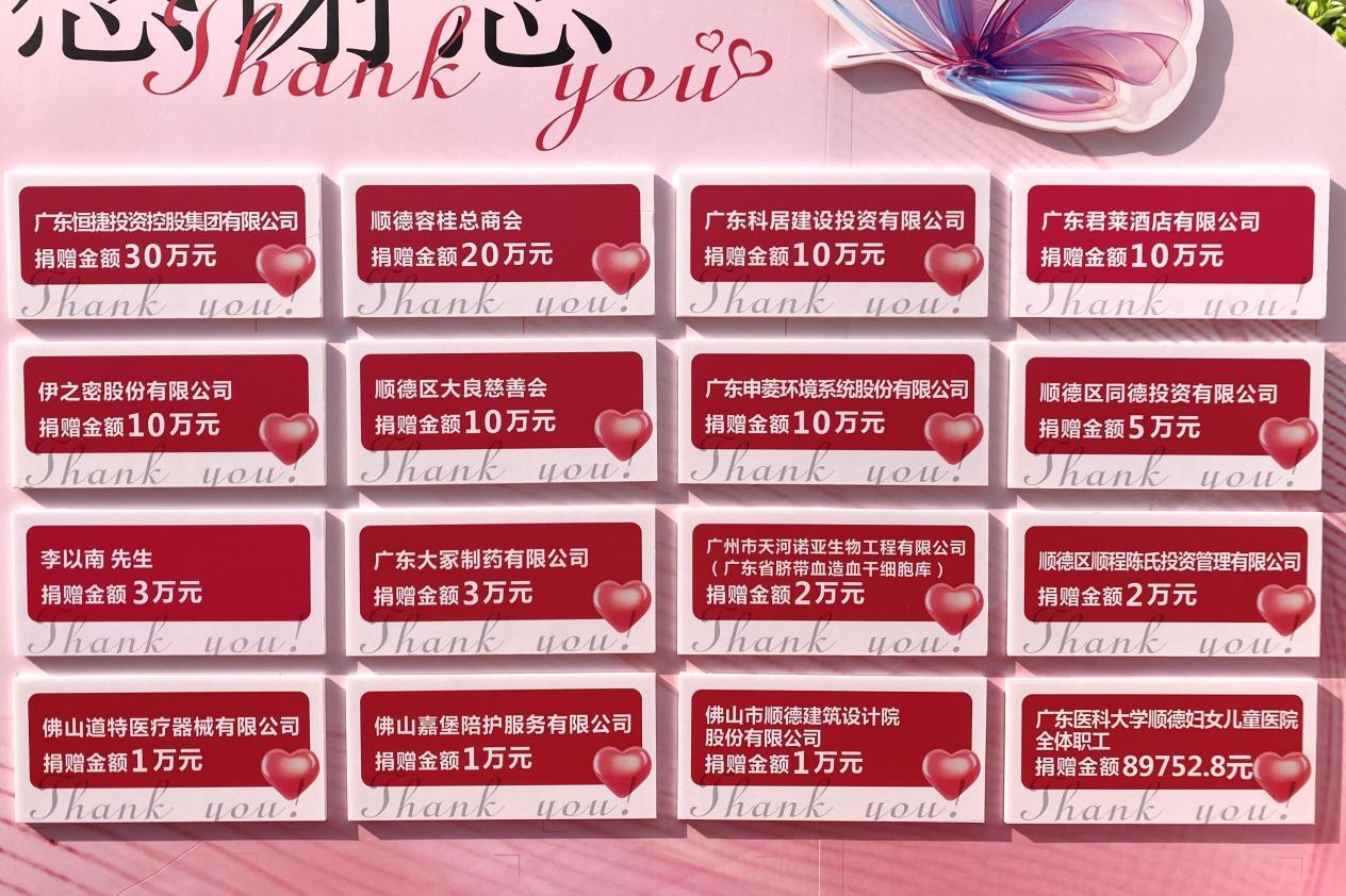 3月26日,“爱心呵护·生命续航”慈善捐赠答谢活动在广东医科大学顺德妇女儿童医院顺利举行。本次活动共筹集得企业、爱心人士约133万元善款。其中,广东恒捷投资控股集团有限公司捐款30万元,广东医科大学顺德妇女儿童医院全体职工也热心捐款近9万元,展现了大爱无疆与医者仁心的精神。医院联合顺德区慈善会,向积极参与“顺德白血病儿童救助项目”并慷慨解囊的热心企业及爱心人士表达诚挚感谢。