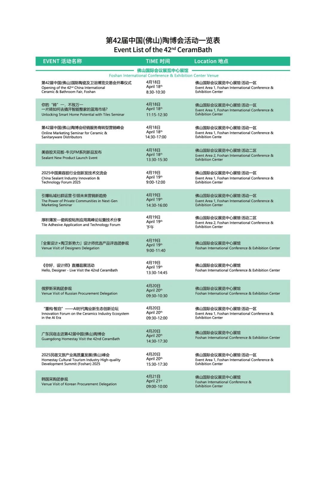 4月18-23日,第42届中国(佛山)陶博会即将在中国陶瓷城、中国陶瓷卫浴总部、佛山国际会议展览中心三展馆盛大开幕!