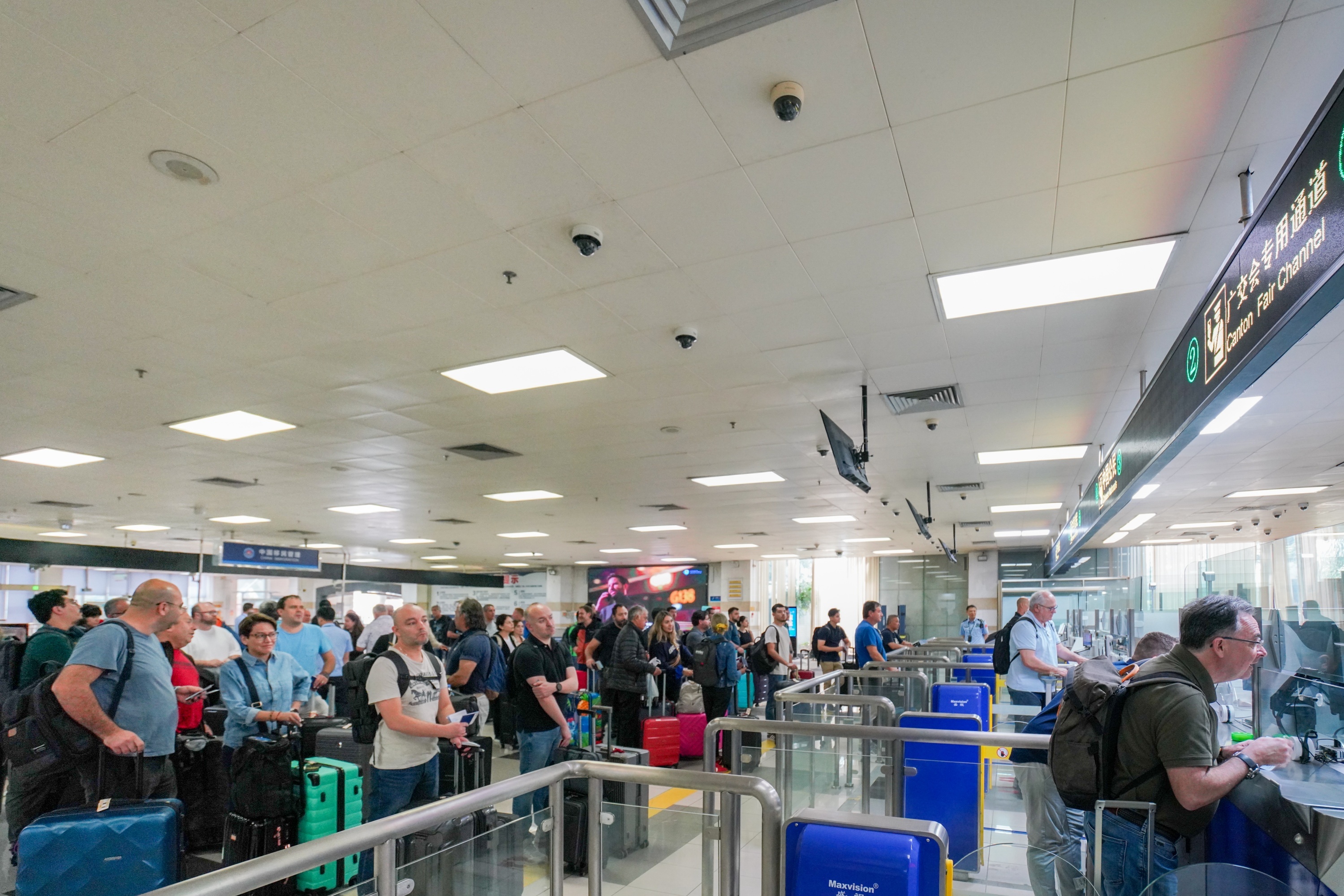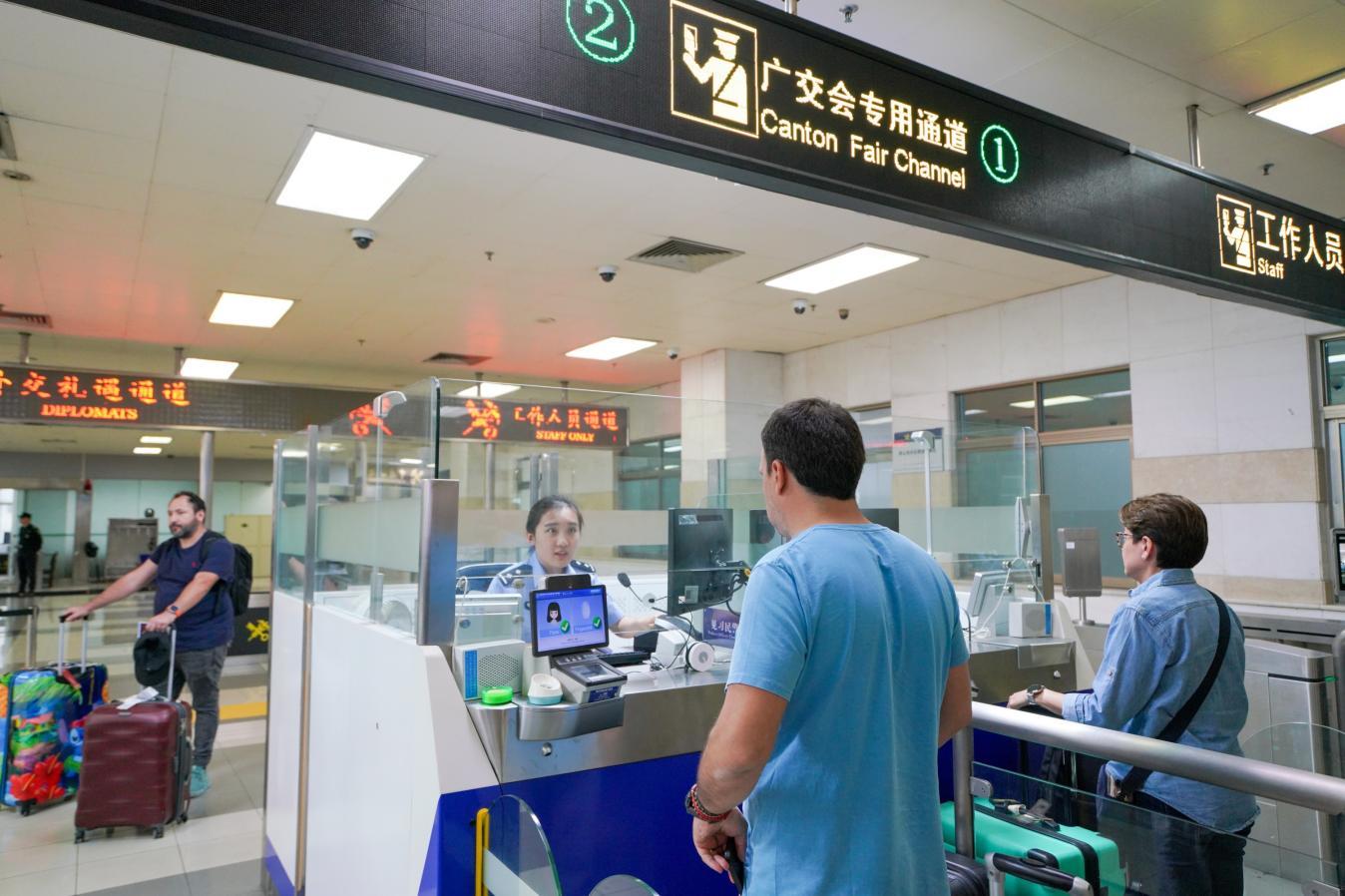为应对广交会期间出入境客流高峰,顺德边检站靠前服务做好通关保障,动态优化警力配置,开设广交会专用通道,派出通晓英语的“女子勤务组”为外国客商提供通关引导、参展指引、政策咨询等服务,服务参展采购商高效快捷通关。