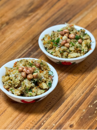 与糯米混合炒在一起,