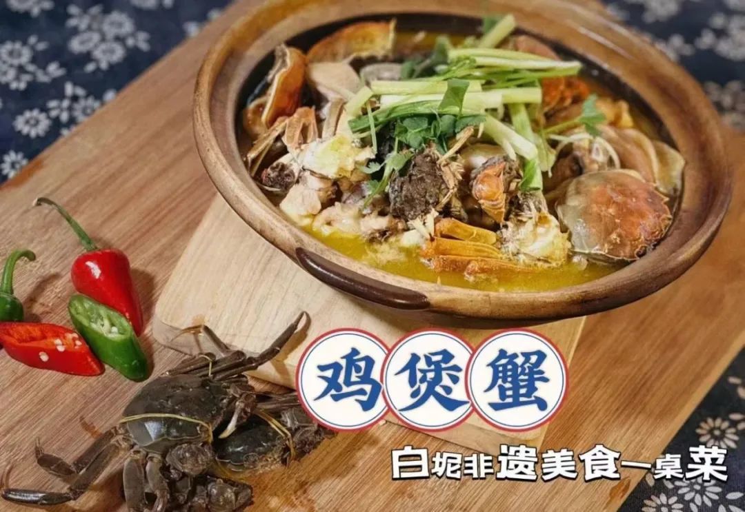 入选三水区第八批非物质文化遗产名录。鸡煲蟹选用肉质鲜嫩的果园走地鸡和大小匀称的毛蟹,加上秘制的酱料,螃蟹的鲜美与鸡肉的醇厚完美融合,汤汁浓郁,香气四溢。每一口都能让你感受到江河与田野的交融,简直是春日里的暖心之选!
