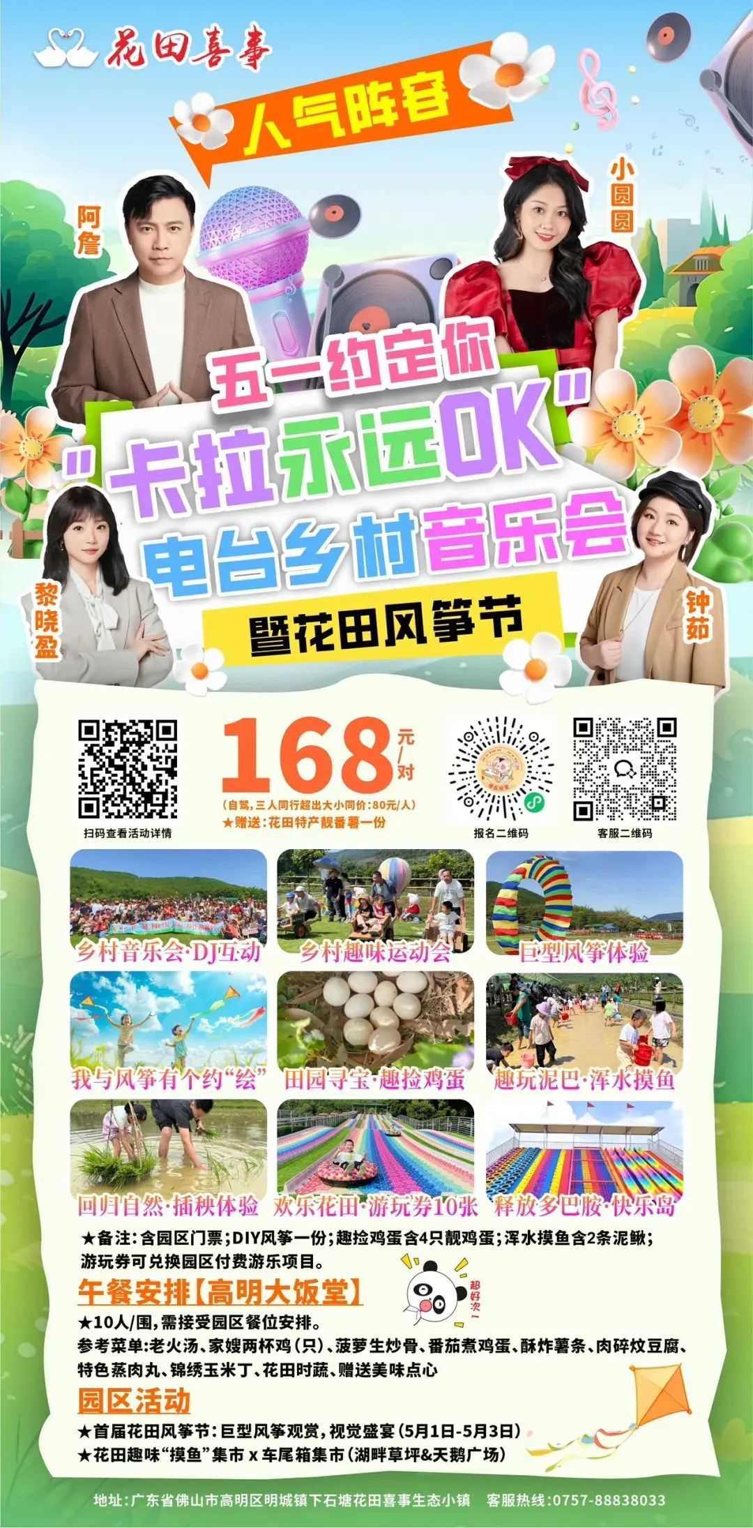 “五一”假期,人气DJ天团齐聚花田,带你解锁“乡村KTV”限定Live!巨型风筝在天空舞动,摸鱼插秧捡鸡蛋……城市里消失的野趣,锁定花田喜事!