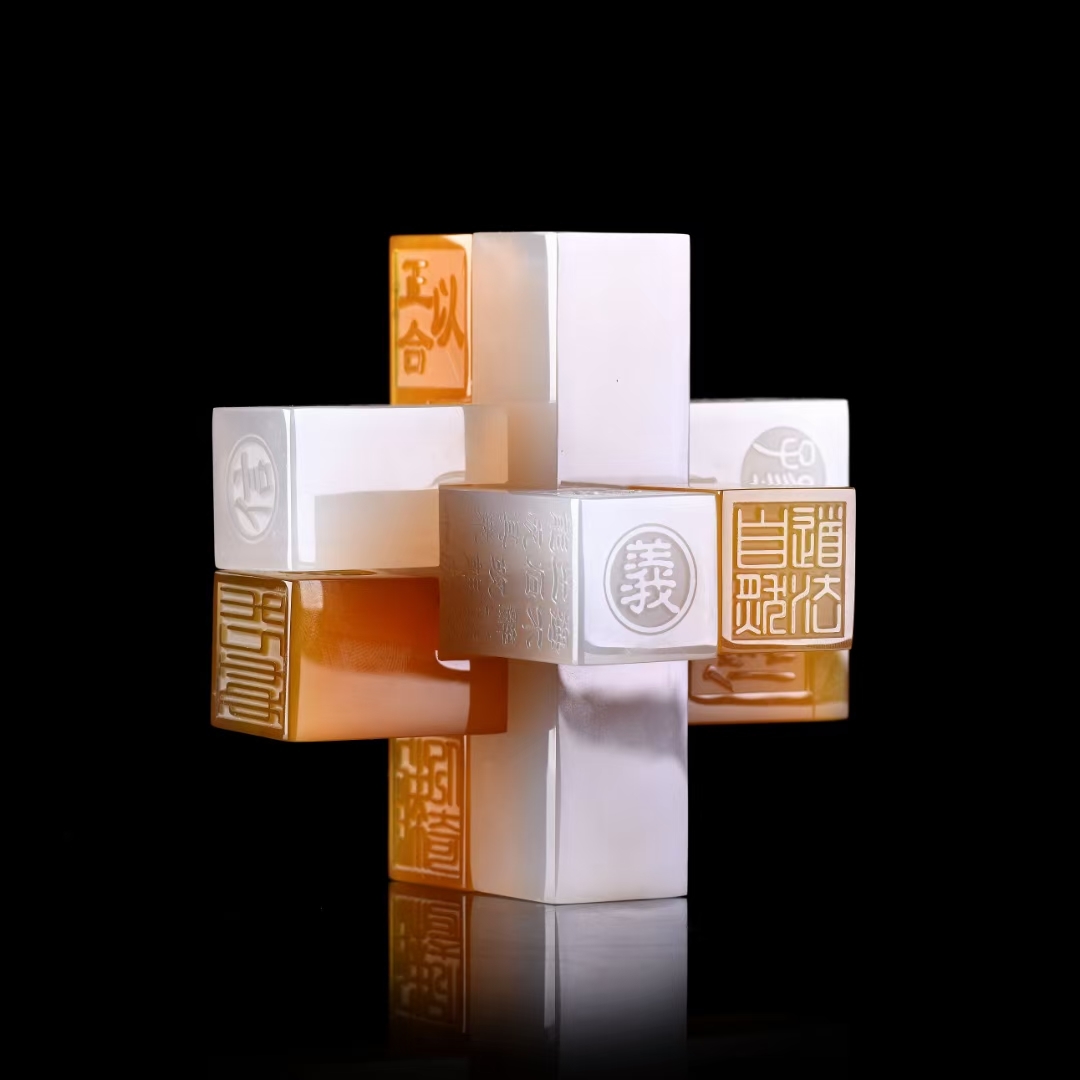 眼前这把六面玲珑的玉石鲁班锁,光原料就用了5公斤无裂翡翠。不同于木头的榫卯结构,玉石每一道卡槽都要精确到0.01毫米,稍有不慎就会崩裂。王胜利为此申请了专利:“传统鲁班锁玩的是结构,我的鲁班锁刻的是《二十四节气》和《十二生肖》,拆开是六块文化碎片,拼起来就是一部中国通史!”