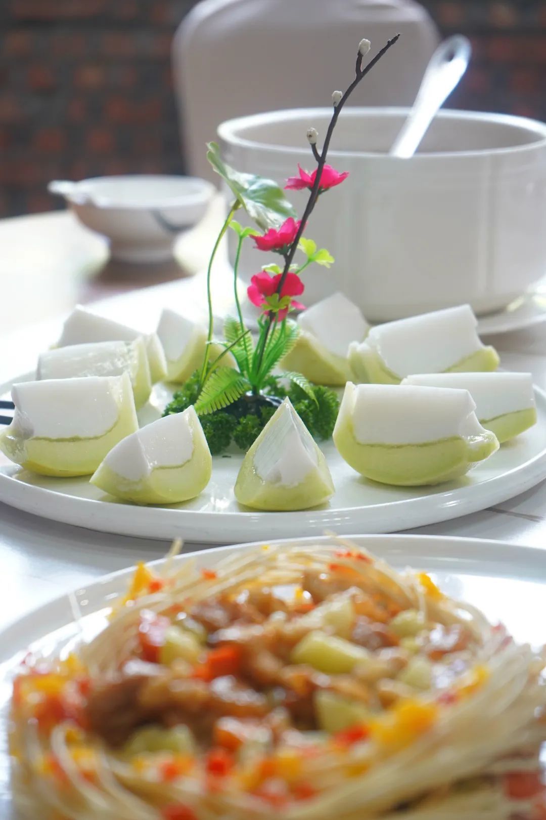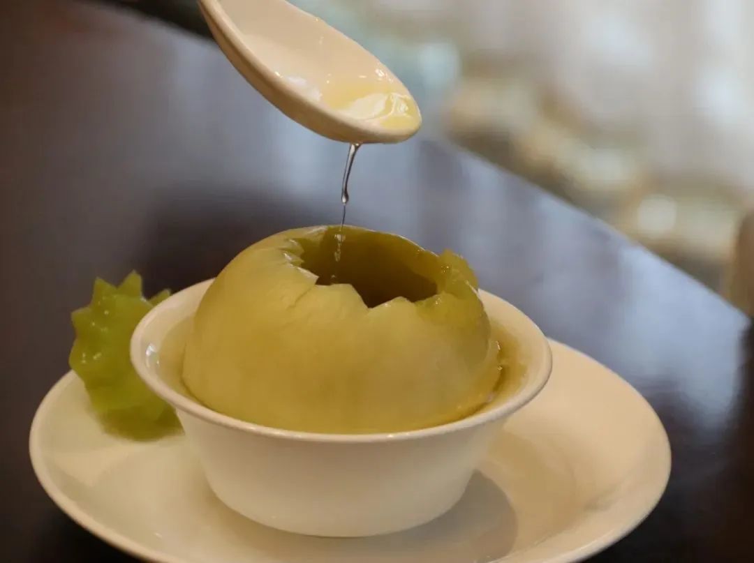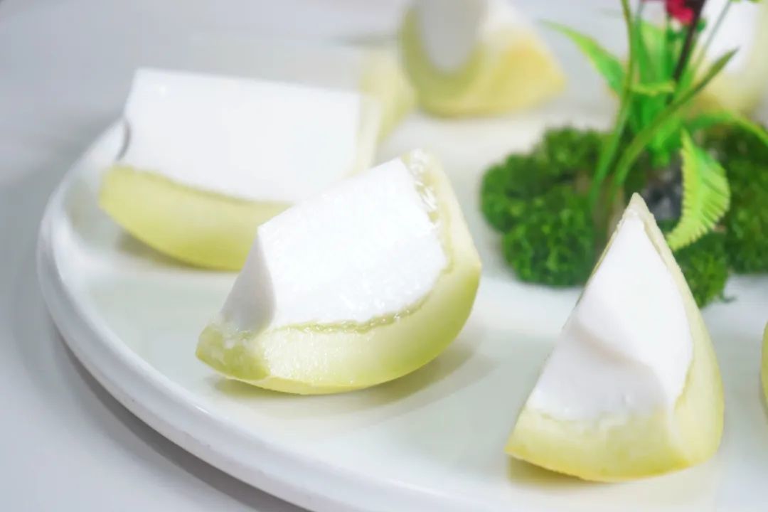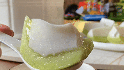椰奶冻在雪梨瓜上“DuangDuang”地晃动,