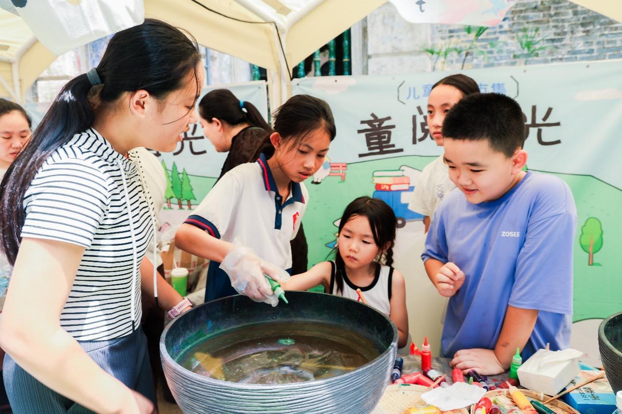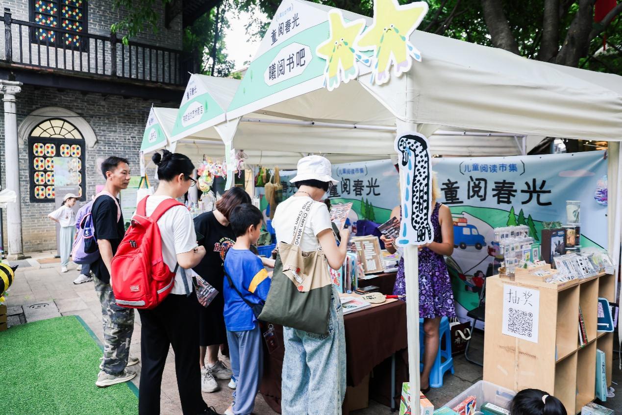 除了庄重的开笔礼外,岭南天地联合先行图书发起的“童阅春光”儿童阅读市集,于端午假期正式开市,连续两个周五六日,集结先行书店、尚书阁、阅见书店、曦阅书吧、山海书店及多家出版社,精选优质儿童读物,依托百年古建筑龙塘诗社及周边广场的独特空间,打造融合阅读、创意与文化于一体的亲子户外体验。