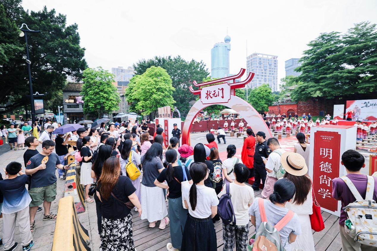 佛山自古崇文重教,岭南天地依托祖庙的千年文脉底蕴,致力于传承中华优秀传统文化。今年端午假期恰逢儿童节,岭南天地以“在地新生”为理念,聚焦亲子家庭假日微度假需求,推出“笔耕初智,阅见未来”亲子主题活动,首次举办百人开笔礼,并提供“晨读夜武”全天文化体验——白天联合先行图书打造“童阅春光”儿童阅读市集,夜间上演沉浸式功夫戏剧《鸿武魂》。通过场景活化和文化内容赋新,为家长与孩子打造一场别开生面的文化寻根之旅。