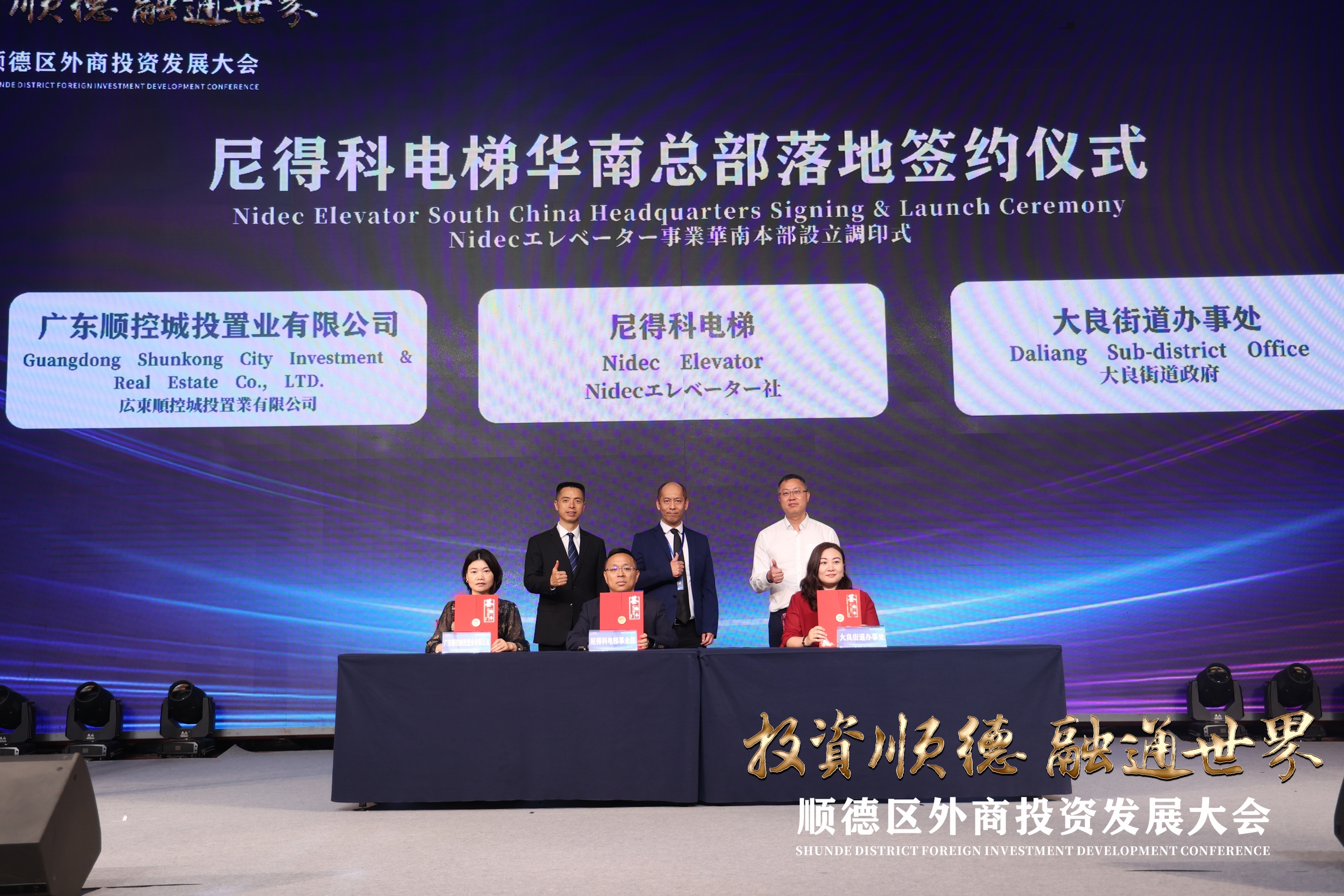 顺德一流的营商环境不断吸引着外商投资企业落户。本次大会上,尼得科电梯华南总部正式落地顺德并举行签约仪式,进一步强化顺德高端制造集群优势。
