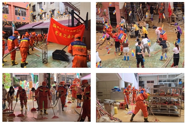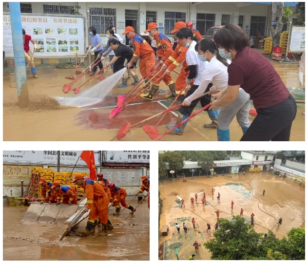 6月20日清晨7时30分,支队救援力量分组到怀城街道第五小学、怀集县教育幼儿园开展校园清淤工作。消防队伍抵达后,立即与校方工作人员紧密协作,针对洪水退去后校园内遗留的大量淤泥、杂物展开全力清障清淤。
