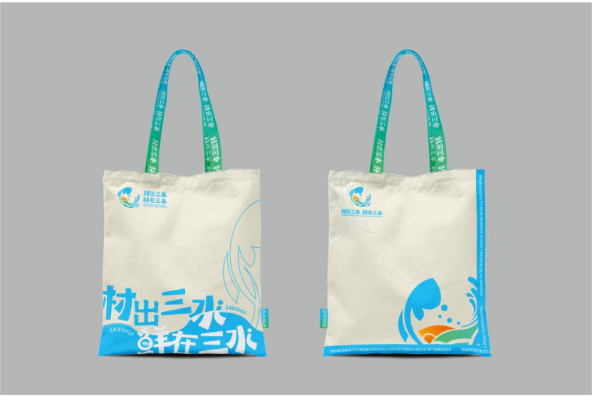该LOGO以三水的地标性建筑——三江汇流为灵感来源将其轮廓抽象为三条流畅的线条,以及蕴含丰富资源的水滴,象征着三水流动的生命力。线条之间巧妙融入了鱼、虾等食材图案,寓意着三水作为新鲜食材源地的独特性与丰富性。
