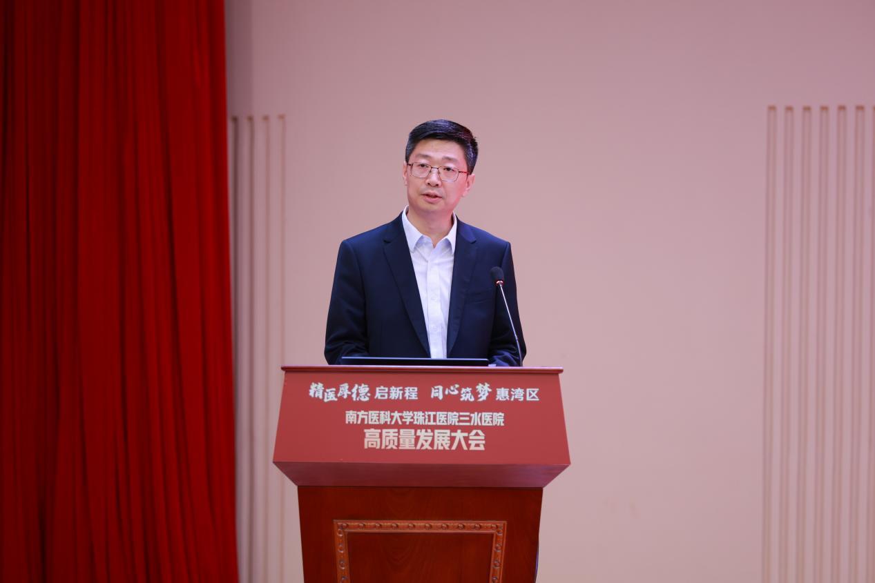高凯副院长表示,新城院区住院部的正式启用是院地深化合作的重要里程碑。他回顾了双方精诚合作取得的显著成果,将三水医院打造成为区域医疗高地、健康港湾和合作标杆。珠江医院将一如既往全力支持三水医院发展,输入管理、技术与品牌资源,以新城院区为依托,聚焦学科建设,深化医教研融合,并与三水区委区政府强化协同,在政策、资源、人才上形成合力,共同推动区域卫健事业迈上新台阶。