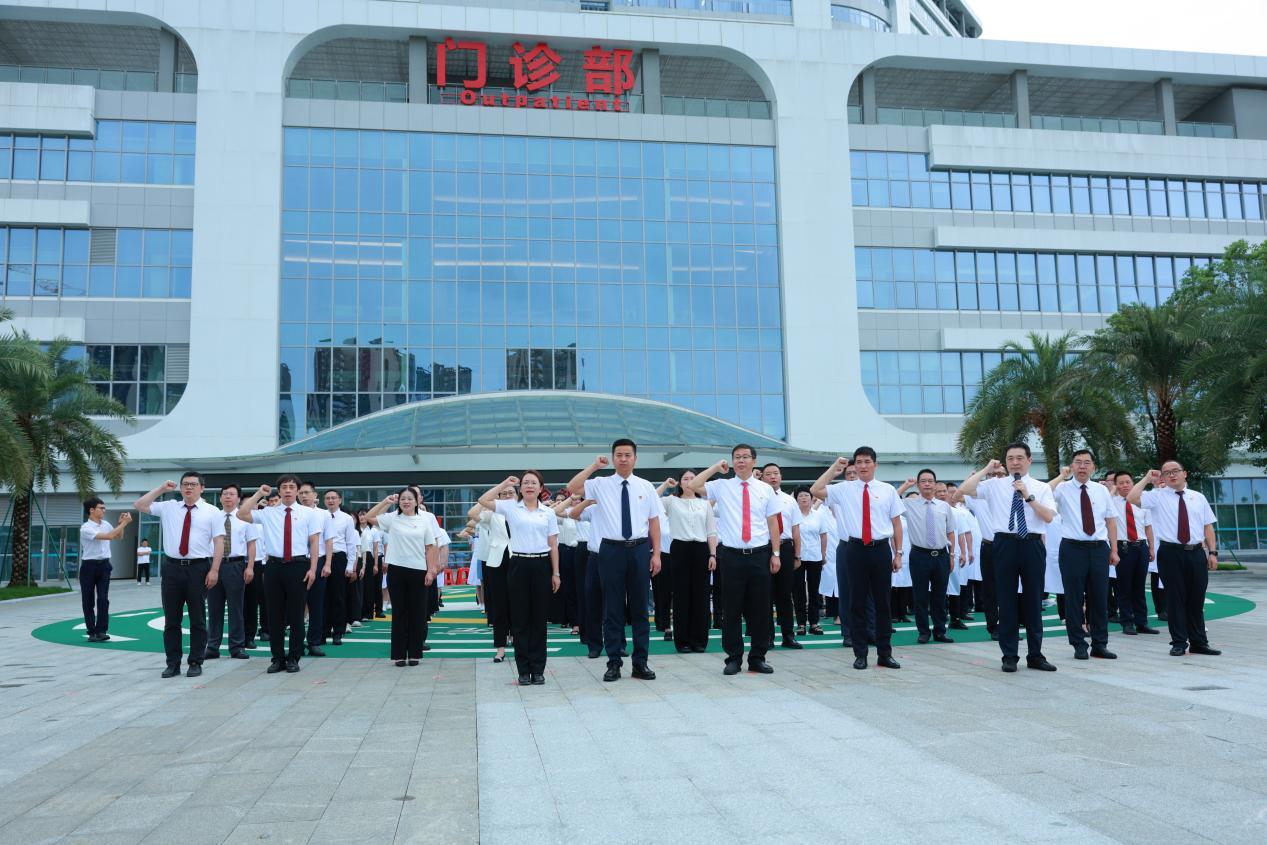 清晨7:30,伴随着第一缕朝阳,新城院区门诊广场上,由36名医护代表组成的护旗方队英姿飒爽。在党委书记李强"以生命守护生命"的致辞声中,五星红旗冉冉升起。院长王沂峰带领全体医务人员庄严宣誓:"恪守医者初心,守护人民健康",铿锵誓言回荡在崭新的院区。这场融合党性教育与职业精神的特殊仪式,生动诠释了新时代医务工作者的使命担当。