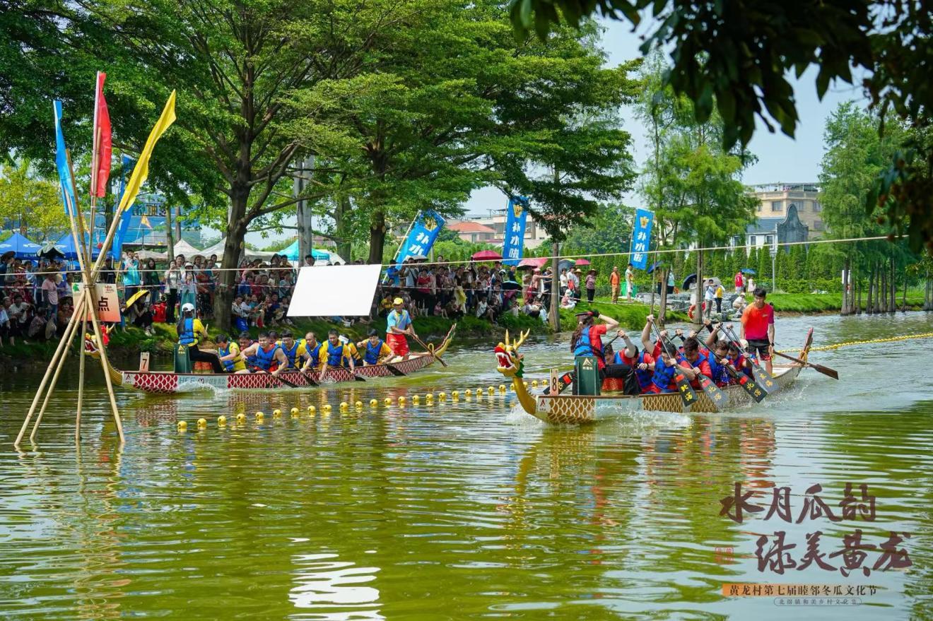 本届文化节以黄龙村“一河两岸”为轴心,设置了四大主题区域,为市民游客打造沉浸式体验。其中,在生态绿地主会场,集结草坪市集、民艺圩、音乐会,融合冬瓜雕刻、香云纱展示、本土乐队演出等精彩活动;在三丰河水域上,龙舟竞速赛(7月5日)、水上拔河赛(7月6日)及桨板体验激情开展,展现了水乡活力。而在黄涌礼堂则推出“白玉如意冬瓜宴”,以冬瓜为主角创新研发十余道特色菜式;龙溪公园内设置了儿童情绪艺术展、镭射冬瓜打卡装置,传递人文关怀。