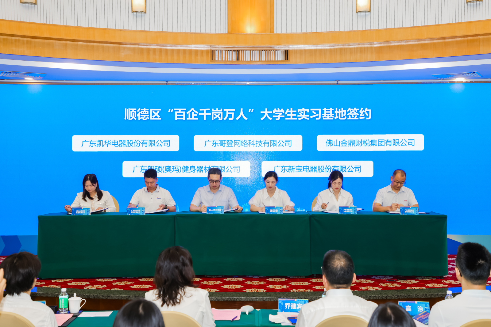 此外,活动上,广东申菱环境系统股份有限公司、广东新宝电器股份有限公司、华南理工大学国家大学科技园顺德创新园等10家企业(园区)签订了“顺德区‘百企千岗万人’大学生实习基地”合作备忘录,这些企业(园区)将每年为大学生提供丰富多样的实习机会和优良保障。未来,该计划将开拓更多产业标杆和行业龙头企业,成为吸引青年人才来顺实习就业的“展翅伙伴”。