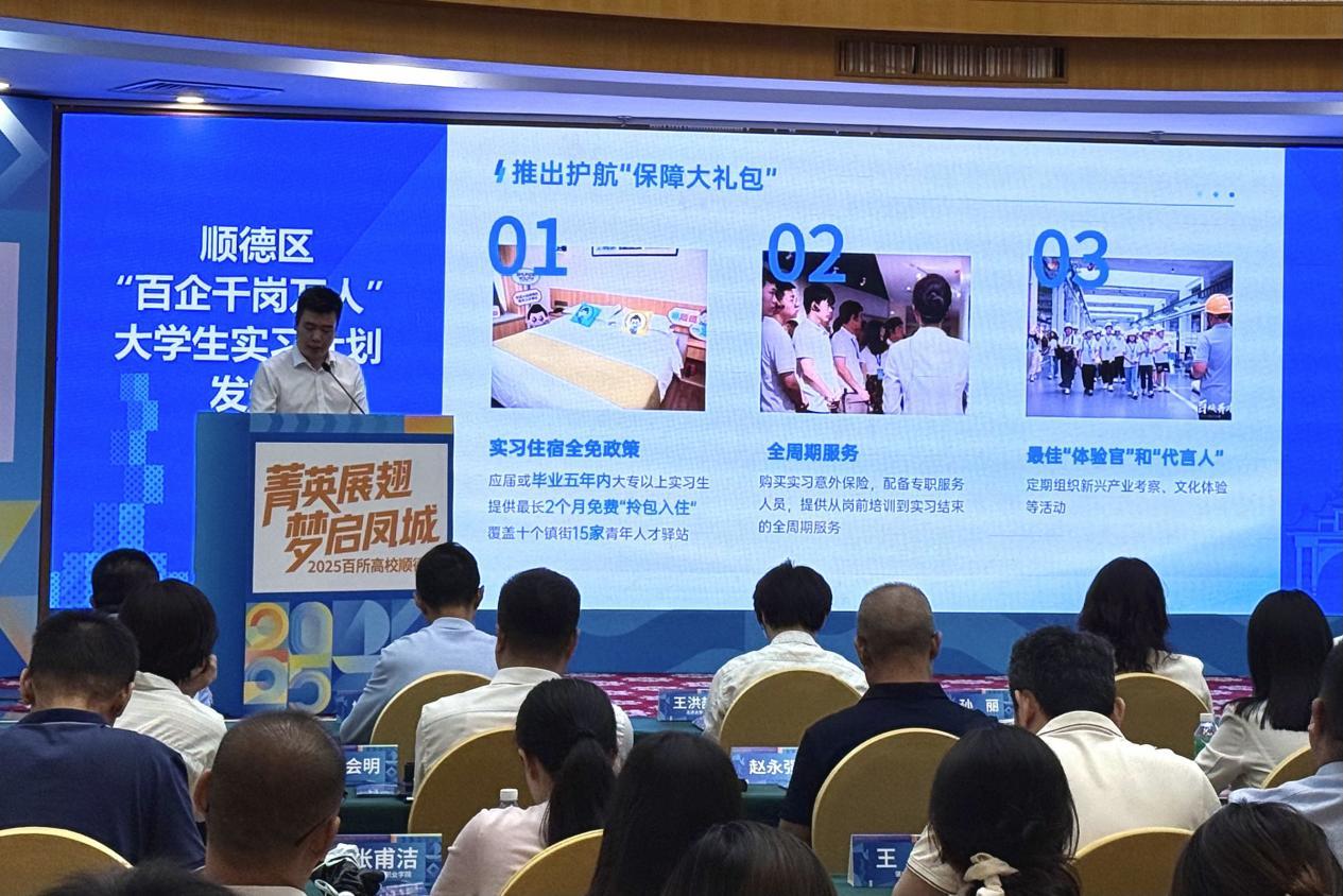 共青团顺德区委员会负责人表示,“百企千岗万人”大学生实习计划的推出有效回应了顺德高质量发展的迫切人才需求,将极大提升顺德对青年的“情感吸引力”。该计划为实习生准备了全程护航“保障大礼包”,包括免费住宿、意外保险、城市体验、青年活动等。其中,在实习住宿保障方面,顺德区的“青年人才驿站”可为参与计划的区外且在顺德无住宿的应届或毕业五年内大专以上实习生提供最长2个月免费“拎包入住”,2025年有100个免费住宿名额。