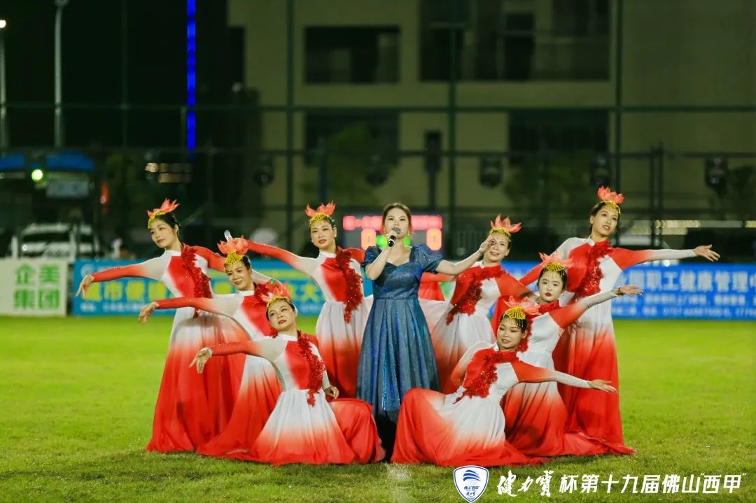 赛事预热阶段,运动员们提前到场热身,在绿茵场上来回奔跑、传球,积蓄比赛能量,让现场氛围提前“升温” 。主持人登场,用热情声音串联活动、造势开场。花球啦啦操活力上演,舞者以动感舞姿、鲜艳花球,勾勒青春活力画卷,点燃观众热情。佛山市丰泽纺织有限公司代表独唱《卓玛》悠扬响起,独特旋律在赛场飘荡,让球迷沉浸式感受主场的温馨与期待。