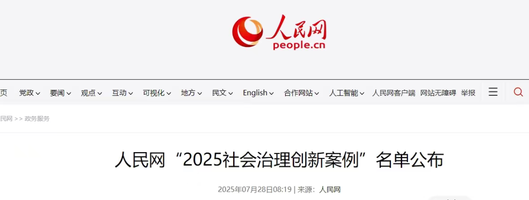 人民网公布“2025社会治理创新案例”名单
