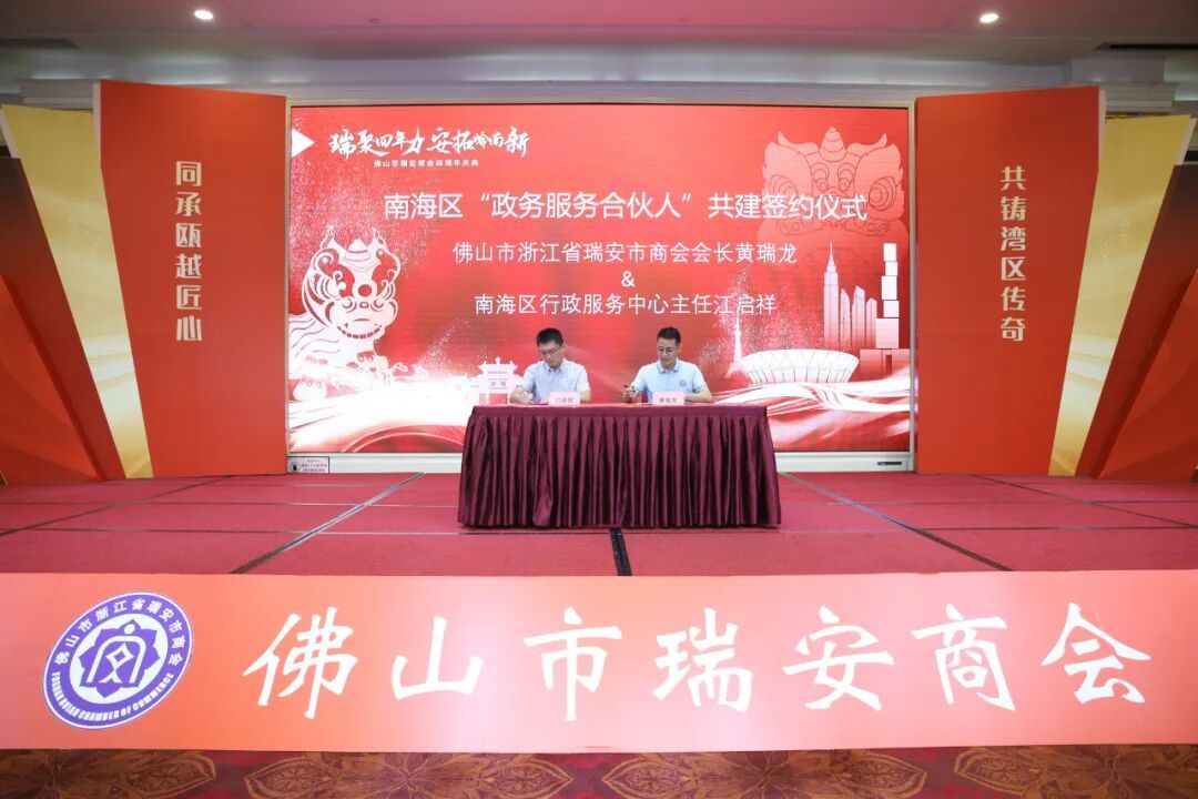 庆典现场,黄瑞龙会长与南海区行政服务中心主任江启祥签署“政务服务合伙人”共建协议,标志着政企合作迈入新阶段。这一机制将为企业提供更加便捷、高效的政务服务,真正实现“企业有呼声,我们有回应”。
