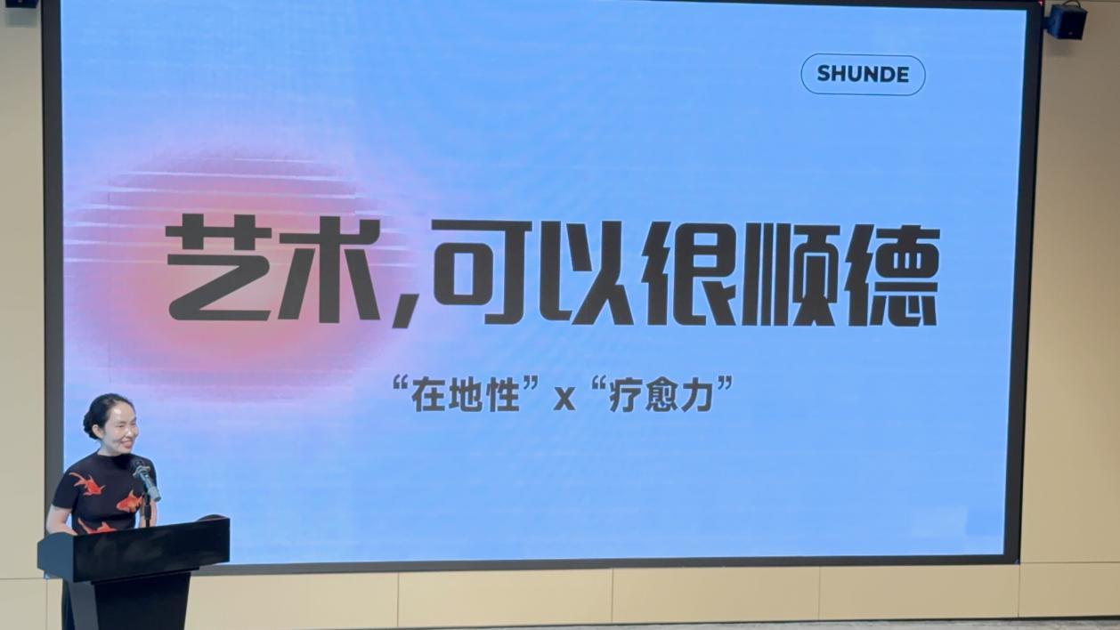 现场,顺德文艺股股长李桑桑为大家介绍顺德文化艺术新亮点。她表示,顺德的每个镇街都有艺术赋能乡村的生动实践,杏坛古朗村和乐从大墩村就是典型。她向大家推介了有“长寿之乡”之称的杏坛古朗村和能在转角遇见艺术,轻松治愈“班味”的乐从大墩村。除了乡村,顺德的艺术同样在展馆中肆意生长。李桑桑提到,北滘“和美术馆”、伦教八六红桥咖啡画室、均安“斑马艺术中心”等展馆都值得一一到访,沉浸体验。