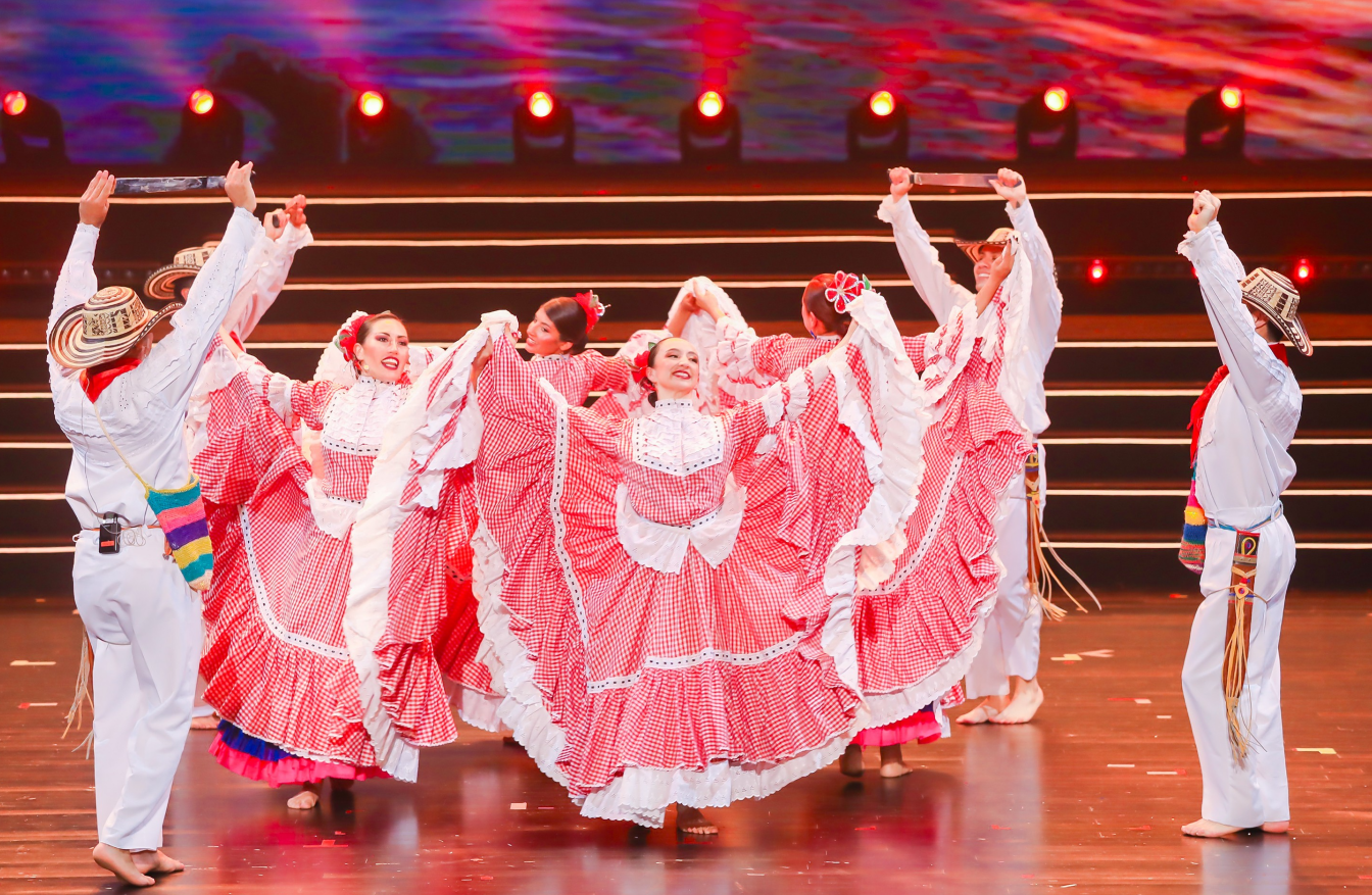 随后,来自哥伦比亚、埃及、格鲁吉亚、毛里求斯、荷兰、新西兰、菲律宾、塞尔维亚、南非、西班牙、斯里兰卡、英国、美国等13个国家的艺术家与中国粤港澳台联合艺术团及佛山本地艺术团同台献艺,各展风采,共同绘就一幅技艺精湛、多元共融的世界风情画卷,令观众沉醉其中。