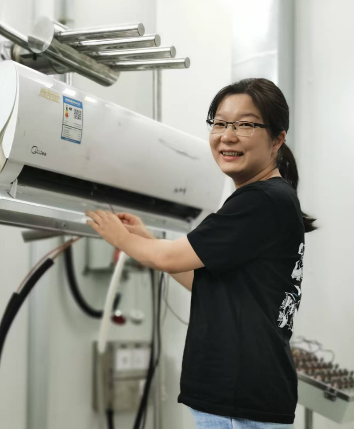 静音一直是美的空调的核心优势,但美的的工程师依旧会孜孜不倦地将它做深做优,美的家用空调事业部机械与力学研究所研究员党南南就是其中一个。由她主导的挂机静音新风技术研究,通过创新“小型高速风轮+声衬扩压”技术,在不扩大墙体穿孔的前提下将新风量提升一倍,夜间运行噪音低至25分贝,解决了用户“闷”和“吵”的痛点,让大家既能享受新鲜空气,又能拥有安静睡眠环境,令整体产品体验得到显著提升。目前,该项技术已搭载于高端空气机T6并获市场热烈反响,后续也会陆续推广到其它的新风空调上。