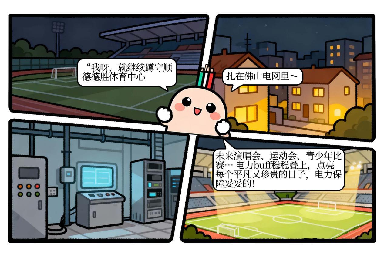 十五运给我的最大馈赠,就是让我从一根“赛会电缆”,转型为这座城市的“永久居民”。我将继续留在这里,留在顺德德胜体育中心,留在佛山的电网中。在未来的演唱会、市民运动会、青少年比赛……用稳定的电流,点亮每一个平凡而珍贵的日常。