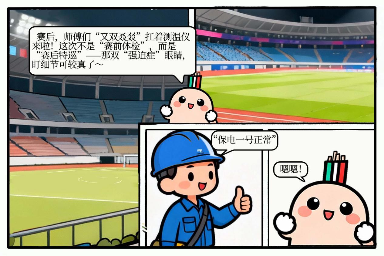 赛场最后一盏大灯熄灭前,场馆里不再有排山倒海的欢呼,也没有哨声与呐喊,但师傅们“又双叒叕”来了,带着红外测温仪等设备,还有那双“强迫症”的眼睛。这一次,不是“赛前体检”,而是“赛后特巡”。