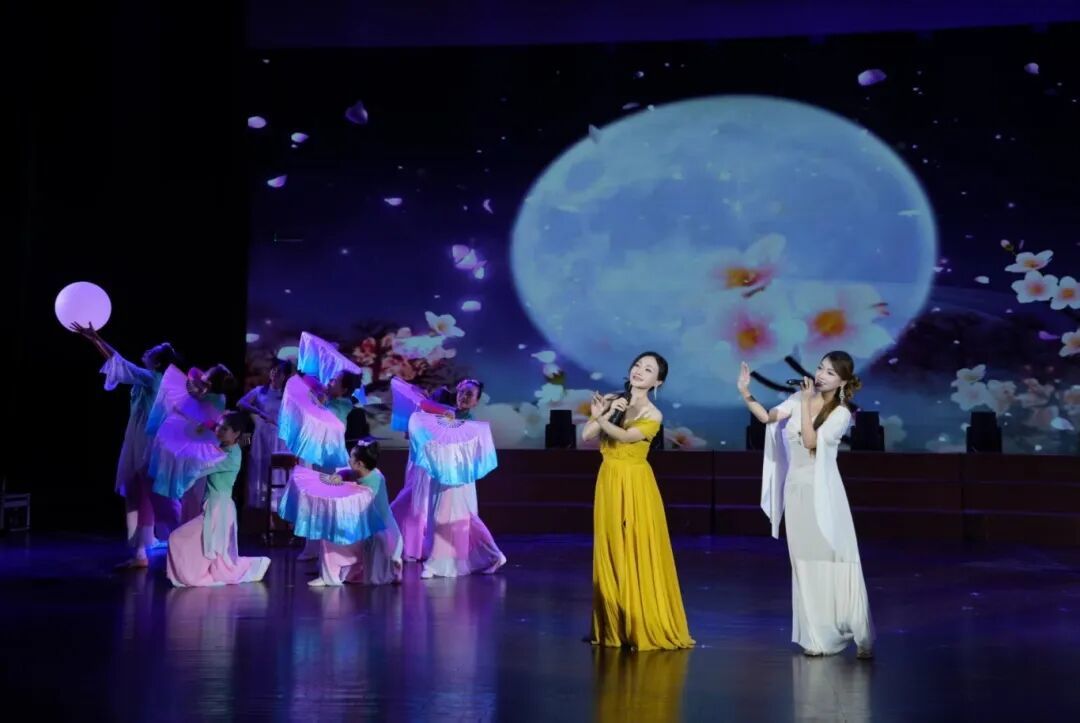 面对繁重的日常教学任务,跨校合排的老师们主动牺牲课余时间,从演唱的气息配合到民乐的节奏同步,从舞蹈的动作规范到服饰道具的色彩搭配,每一个环节都经过数十次推敲打磨。演出当天表演团队用默契协作让《彩云追月》的旋律与表演完美呈现,最终以专业水准征服所有评委与观众。